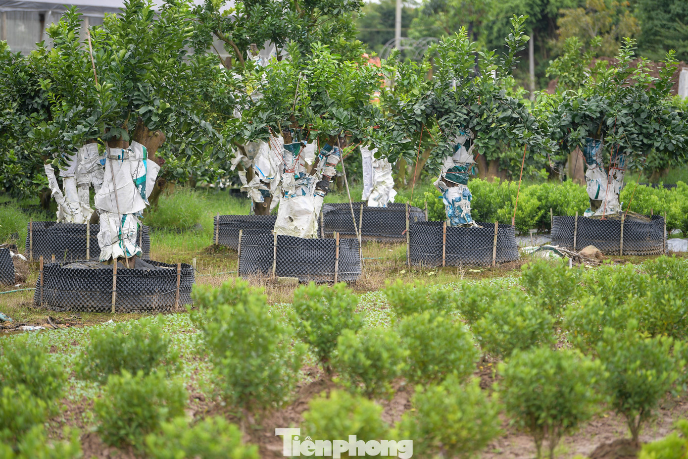 Giữa tháng 11, khi tiết trời ấm và độ ẩm cao, người trồng cây cảnh ở các xã Phụng Công, Liên Nghĩa, Mễ Sở (huyện Văn Giang, Hưng Yên) – “vựa cây cảnh” lớn nhất miền Bắc – lại tất bật phục hồi vườn sau đợt ngập sâu. Nhiều gốc quất, bưởi cảnh bị thối rễ, rụng lá, người dân phải cắt tỉa, phun thuốc và thay đất để cứu cây, hy vọng kịp vụ Tết.