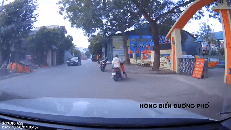 Sự cố này khiến 2 mẹ con ngã xuống đường đau điếng. Ảnh cắt từ clip/Nguồn: Hóng Biến Đường Phố