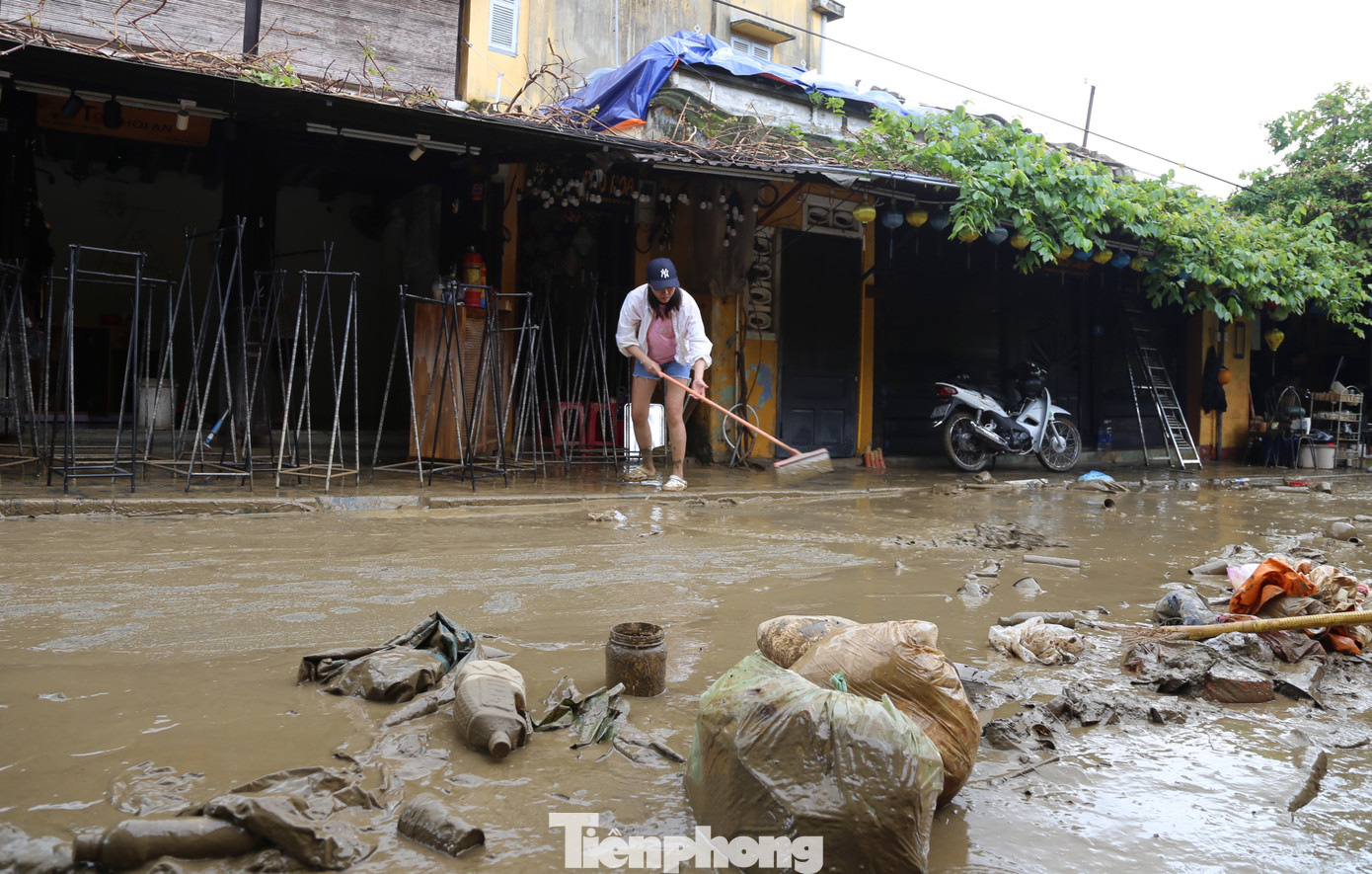 Lũ lớn những ngày qua khiến lượng rác và bùn non đọng đầy phố cổ, người dân mất rất nhiều thời gian, công sức để dọn dẹp