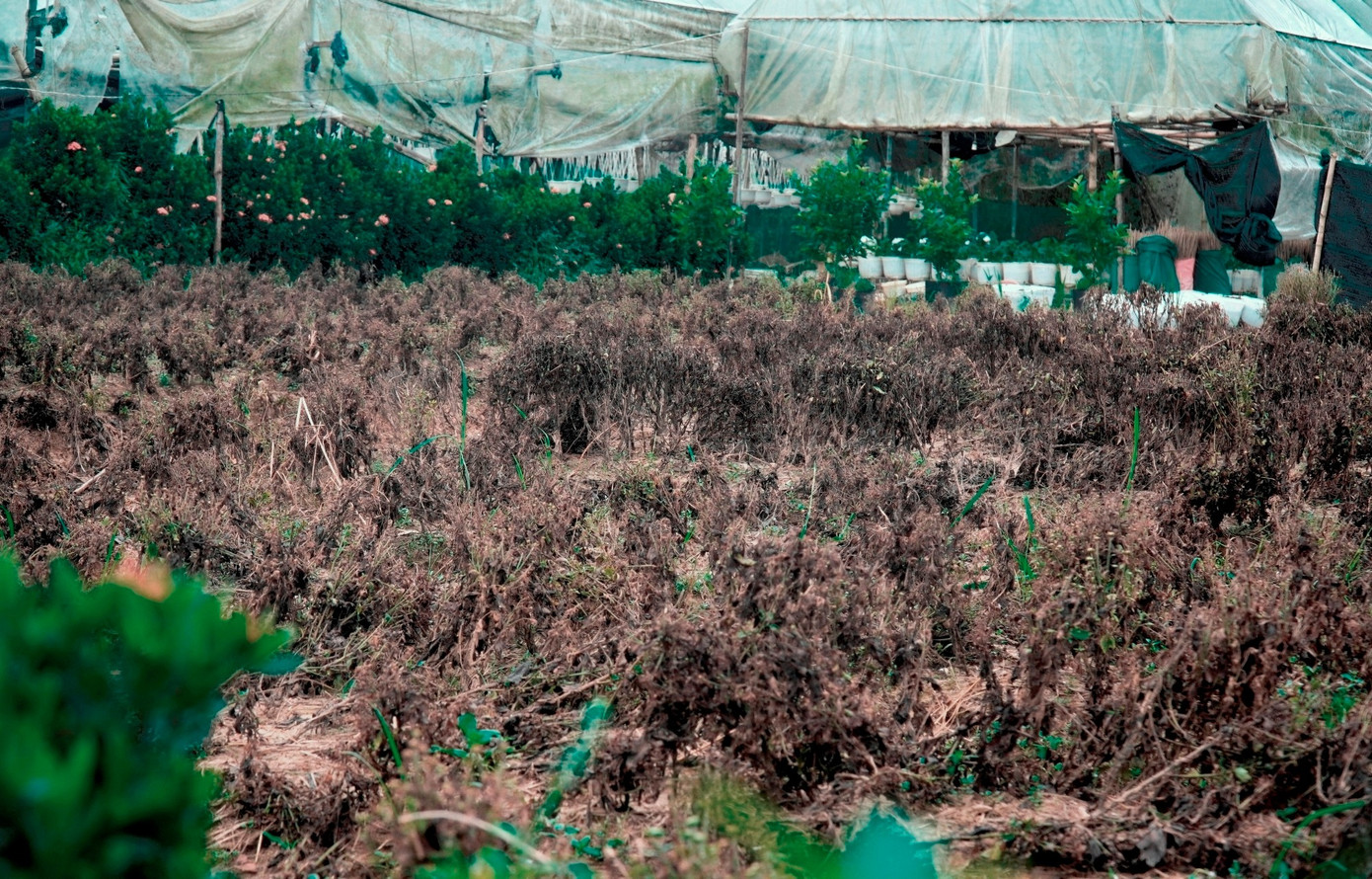Trong khu vườn hơn 2.000 m2 tại Tiên Nộn, anh Nguyễn Văn Duẩn cố gắng tỉa bỏ những thân nhánh cây hoa thối, bón phân kích lại rễ để cứu những cây sót lại. Anh Duẩn chẳng còn hy vọng nhiều về những gì còn sót lại tại vườn hoa khi nhìn vào màu lá đã thay đổi bất thường, còn phần gốc lại mềm úa. “Ai cũng muốn gắng gượng vượt qua khó khăn, nhưng lũ lụt tái diễn nhiều lần, nhà vườn nào ở đây giờ cũng hư hại như vậy cả”, anh Duẩn nói.