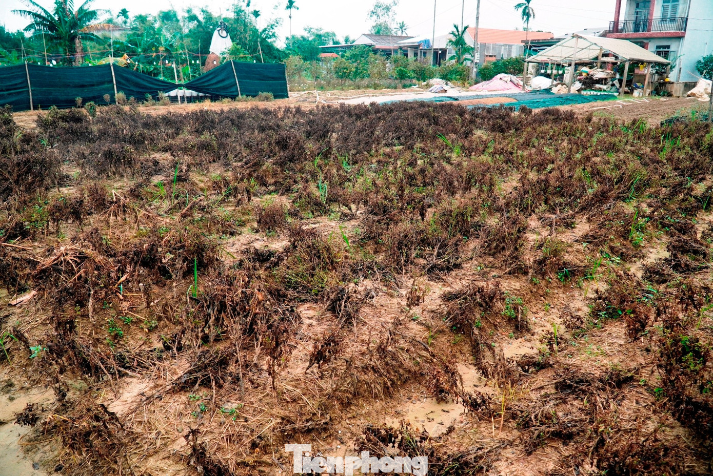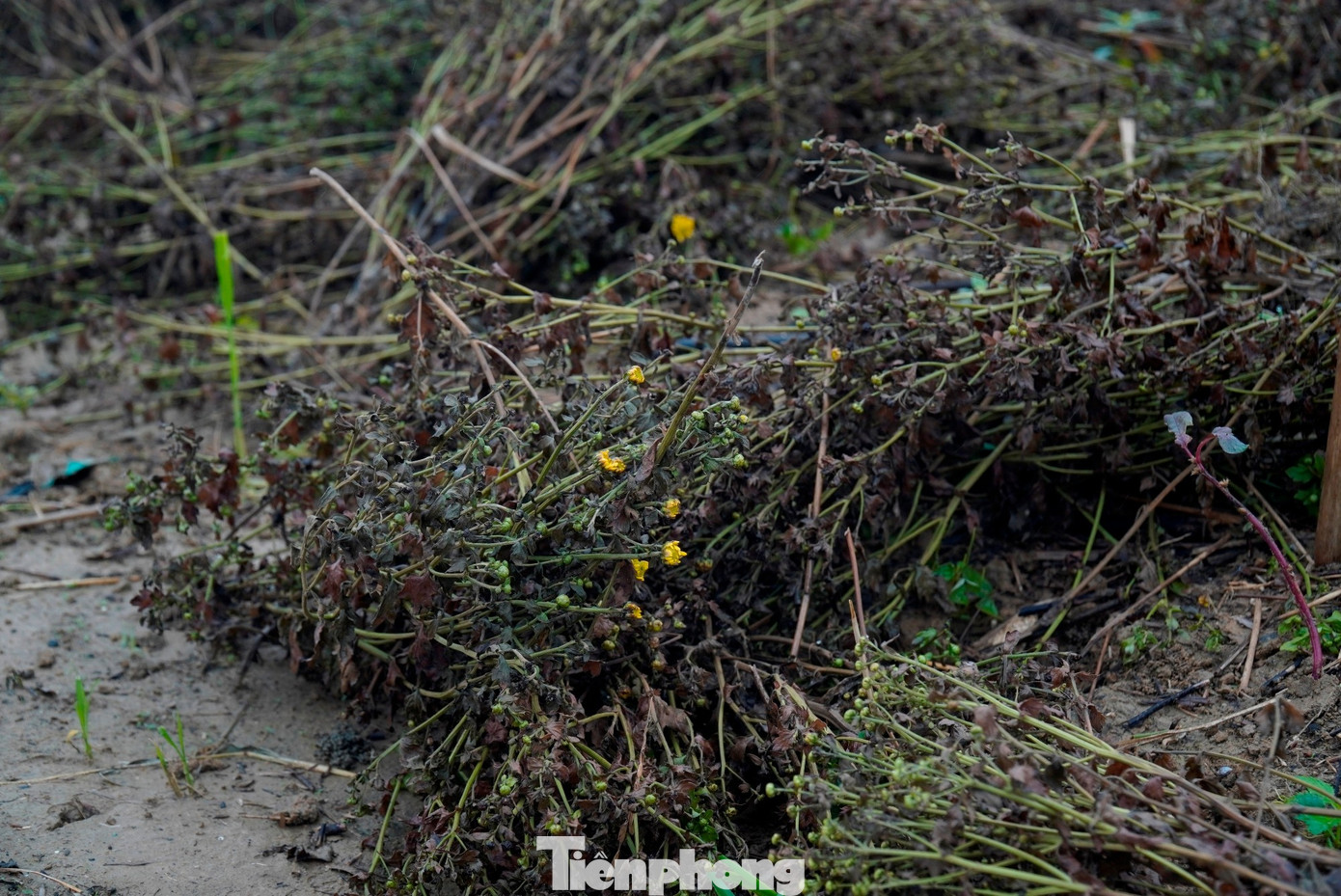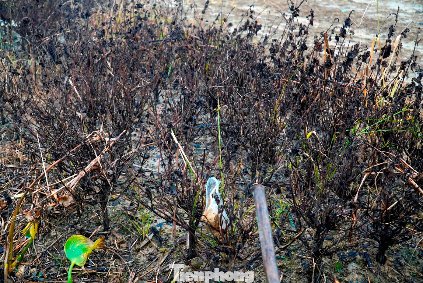 Ở tổ dân phố (TDP) Thanh Vinh - vùng trồng hoa lớn nhất phường, nhiều diện tích hoa cúc, thược dược, vạn thọ… ngập trong bùn quánh. Những luống hoa được chăm chút ròng rã suốt 3 tháng chuẩn bị cho vụ Tết giờ chỉ còn lại những khoảnh đất nhão. Những thân hoa thối còn sót lại lác đác trên đồng ruộng ngập đầy bùn, rác, khiến nhiều người khó hình dung chỉ khoảng một tháng trước, đây là nơi từng ngập tràn sắc hoa, cây lá tươi tốt. Giờ đây, từng đống cây hoa khô thối được gom lại để đưa ra khỏi ruộng.