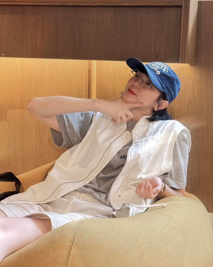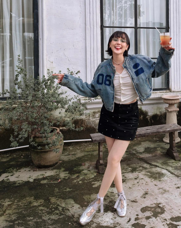 Trong loạt ảnh, Hải Tú xuất hiện với phong cách trẻ trung và cá tính: áo ôm sát tôn dáng, chân váy ngắn năng động, khoác ngoài áo jeans bụi bặm và mang đôi giày thiết kế lạ mắt. Cô nàng cũng cắt tỉa lại tóc ngắn, đeo kính tâm và vui vẻ tạo dáng bên chiếc bánh kem màu xanh pastel.