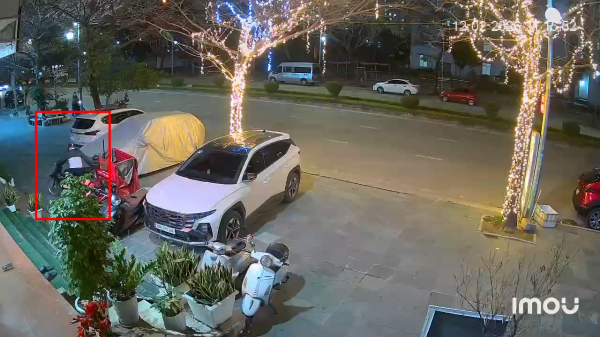 Hình ảnh hai đối tượng trộm xe máy được camera an ninh ghi lại.