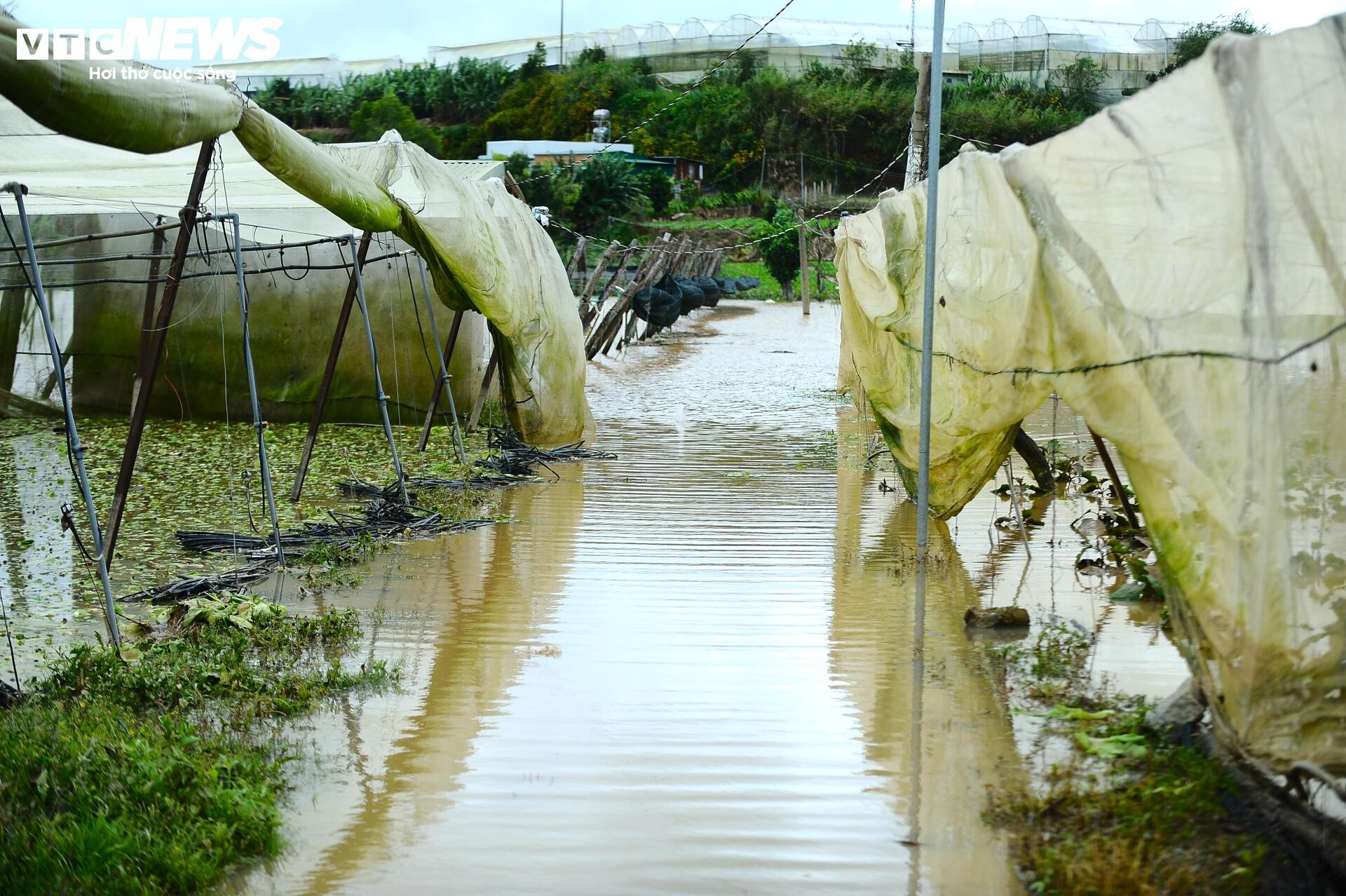 Nhiều diện tích hoa màu, vườn tược, nhà kính của người dân bị nước nhấn chìm gây hư hại nặng nề.