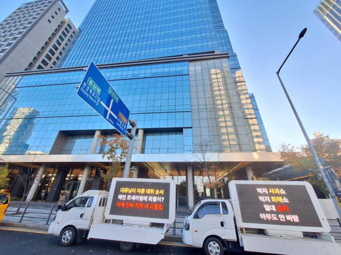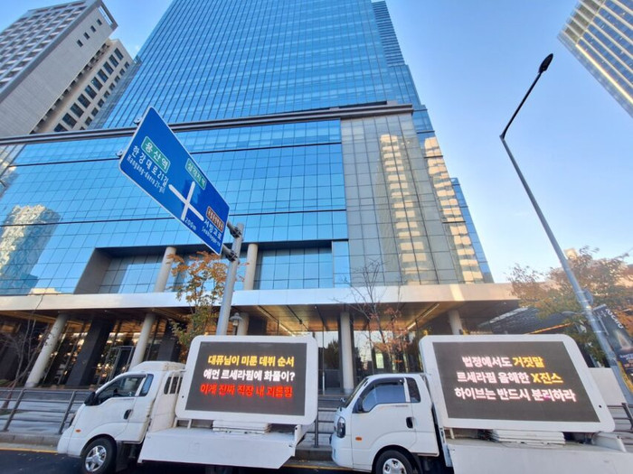 Ngay sau thông tin này, fandom LE SSERAFIM đã gửi những chiếc xe tải phản đối đến trụ sở HYBE, thể hiện thái độ quyết liệt và yêu cầu công ty có hành động rõ ràng. Theo các thông điệp đăng tải trên mạng xã hội: