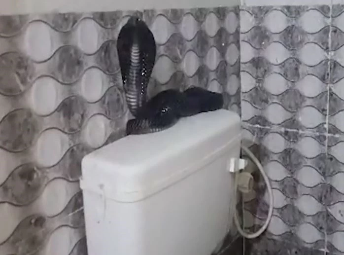 Một tình huống khiến nhiều người rùng mình đã xảy ra tại Kota thuộc bang Rajasthan, Ấn Độ khi một người đàn ông bất ngờ phát hiện rắn hổ mang chúa trong nhà vệ sinh của gia đình.