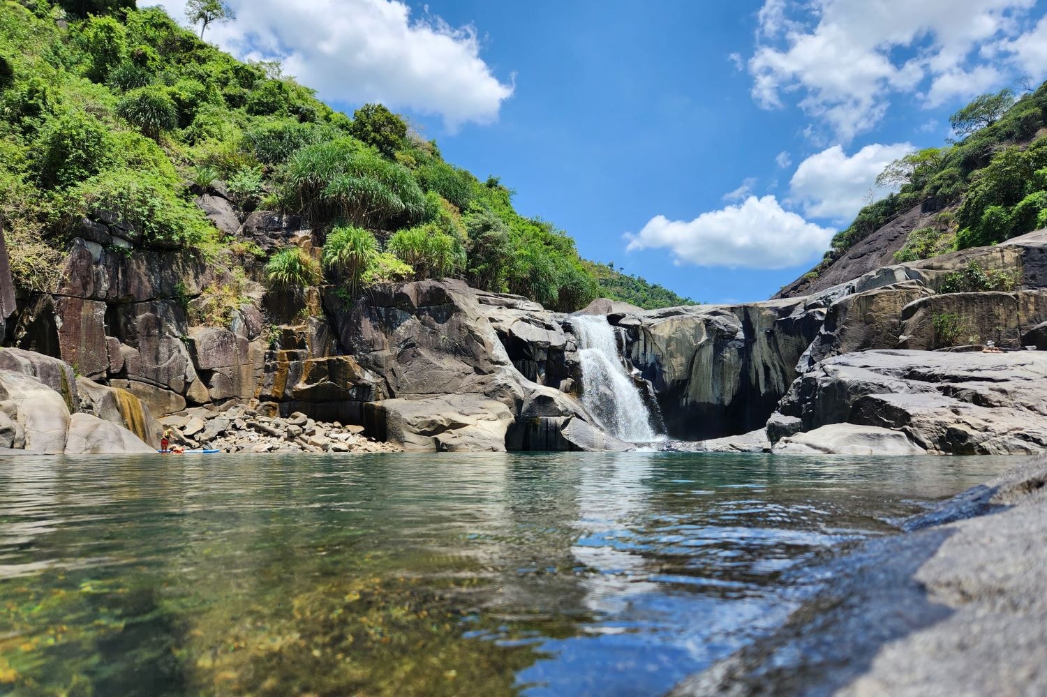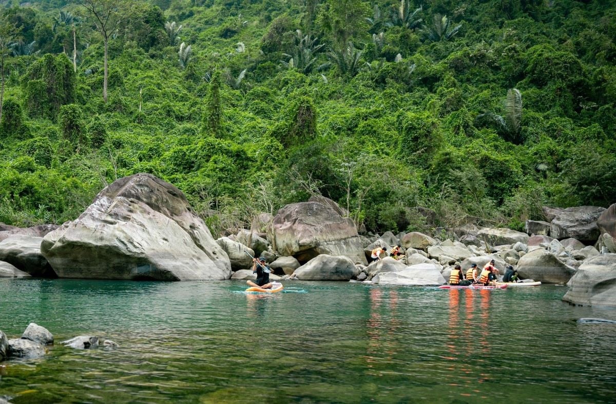 Sau hành trình trekking, việc đắm mình trong làn nước mát lạnh của Vực Phun là một phần thưởng tuyệt vời. Dòng nước trong vắt và không khí trong lành mang lại cảm giác thư giãn hoàn toàn. Ngoài ra, chèo SUP trên mặt hồ phẳng lặng là một hoạt động được nhiều du khách yêu thích để ngắm nhìn trọn vẹn vẻ đẹp của vách đá và rừng cây xung quanh.