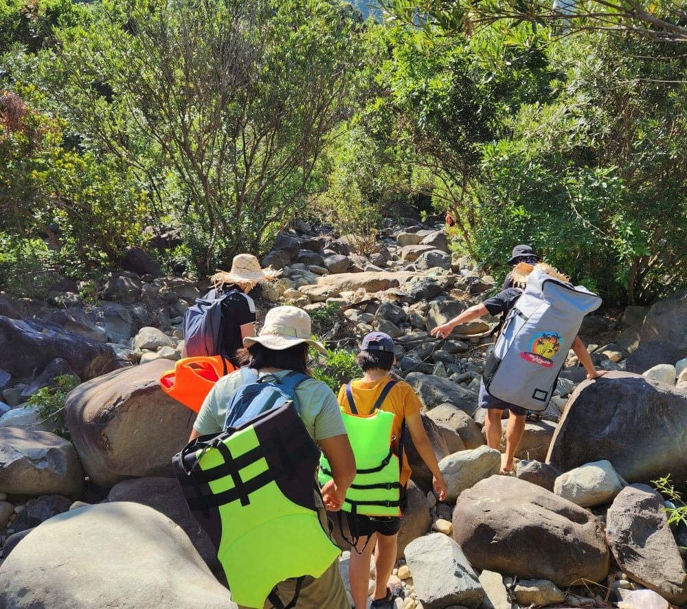 Giày dép: Ưu tiên giày thể thao hoặc giày leo núi có độ bám tốt để di chuyển trên địa hình đá trơn trượt.