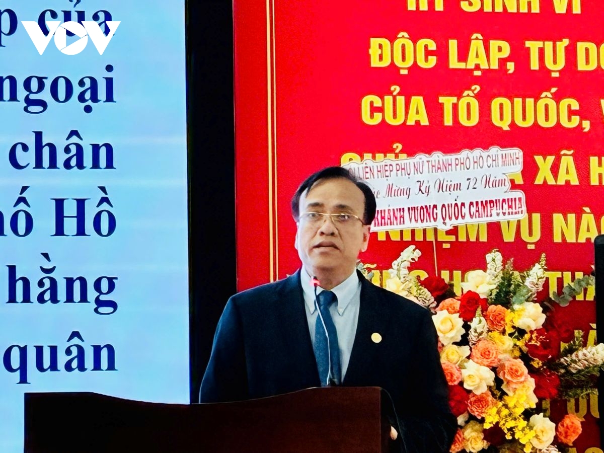 Phát biểu tại buổi lễ, Trung tướng Nguyễn Văn Nam, Chủ tịch Hội Hữu nghị Việt Nam - Campuchia TP.HCM nhấn mạnh mối quan hệ hữu nghị truyền thống, hợp tác tốt đẹp giữa hai nước được vun đắp trong suốt hành trình đấu tranh giải phóng dân tộc và xây dựng đất nước.