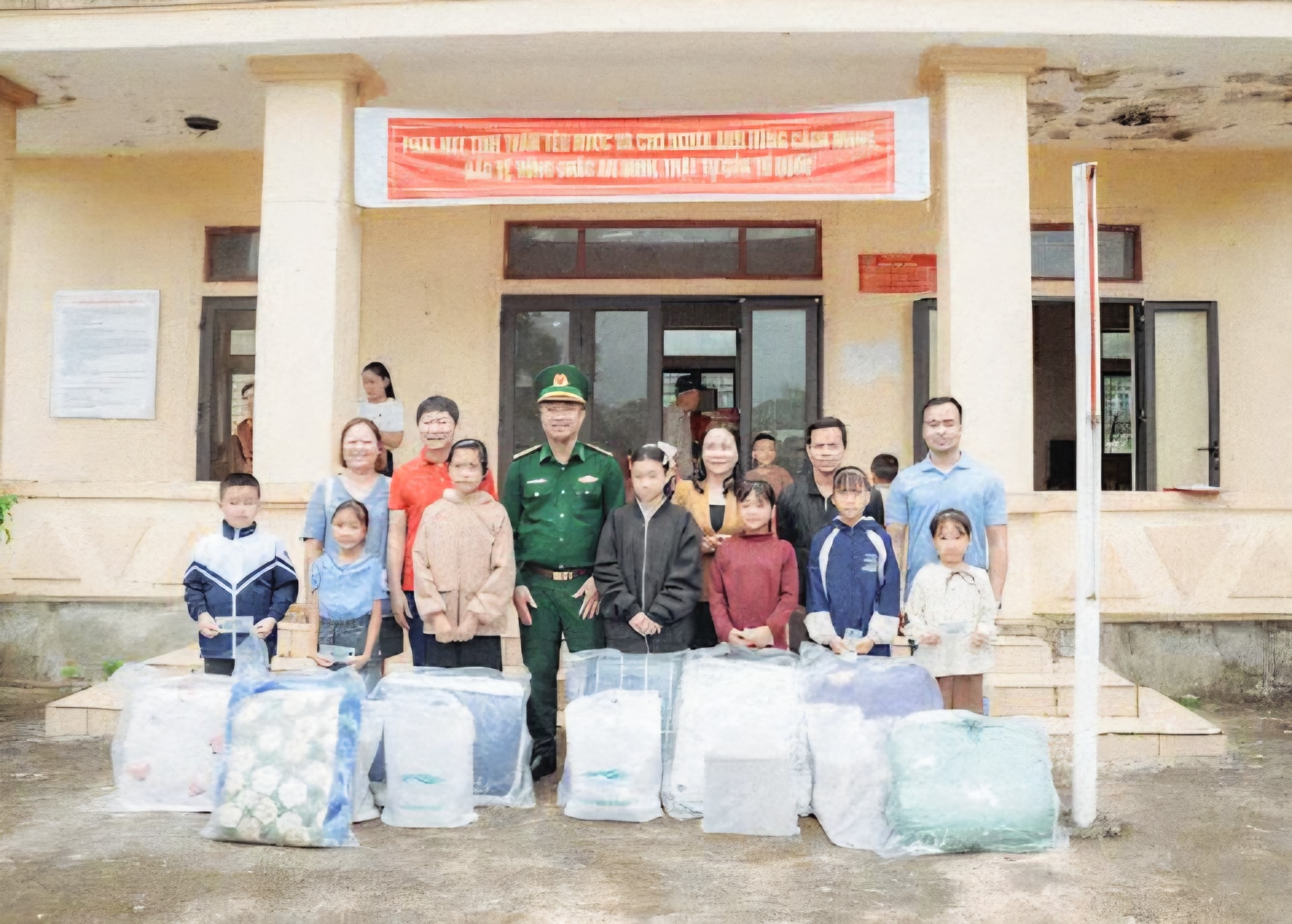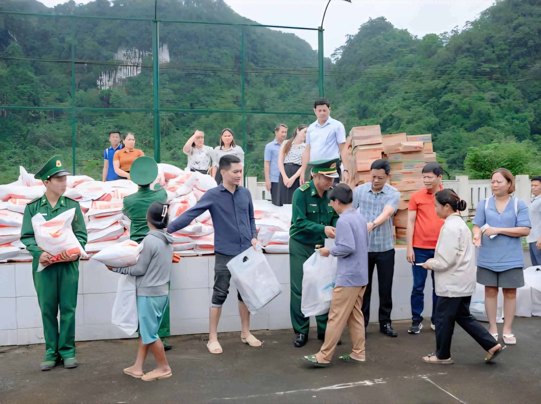 Đồn Biên phòng Cà Xèng phối hợp Đoàn Thiện nguyện Phố Cổ Hà Nội trao 500 suất quà trị giá hơn 500 triệu đồng cho người dân và học sinh bị ảnh hưởng mưa bão.