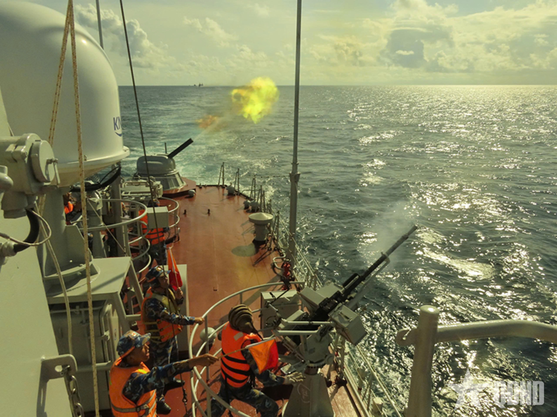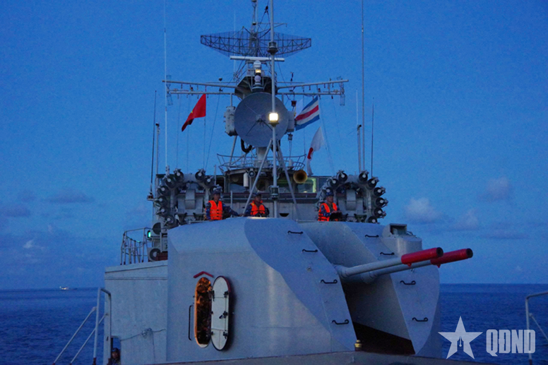 Tàu Vùng 2 Hải quân cơ động vào tuyến bắn mục tiêu di động ban đêm.