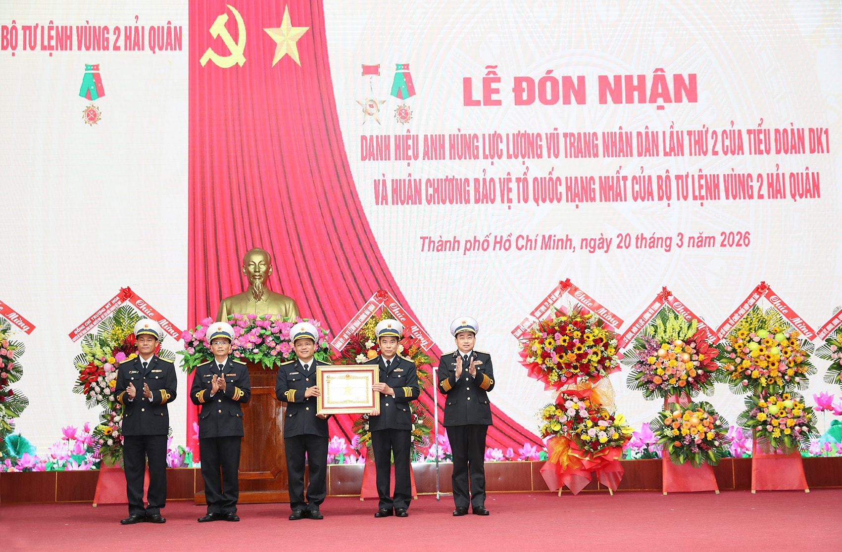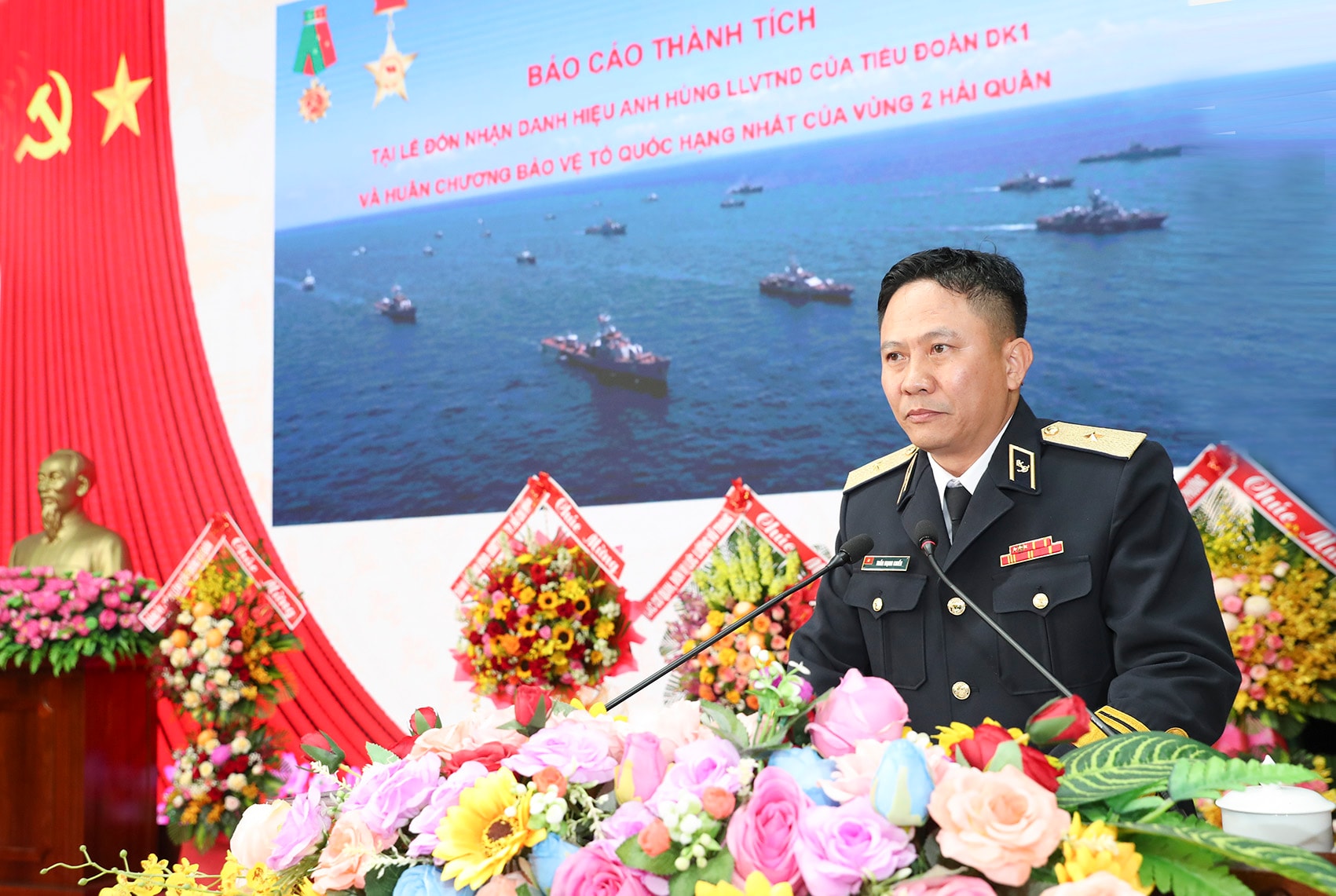 Tại buổi lễ, thừa ủy quyền của Chủ tịch nước, Phó Đô đốc Trần Thanh Nghiêm, Tư lệnh Quân chủng Hải quân đã trao danh hiệu “Đơn vị Anh hùng Lực lượng vũ trang nhân dân” cho Tiểu đoàn DK1; Phó Đô đốc Nguyễn An Phong trao Huân chương Bảo vệ Tổ quốc hạng Nhất cho Vùng 2 Hải quân.