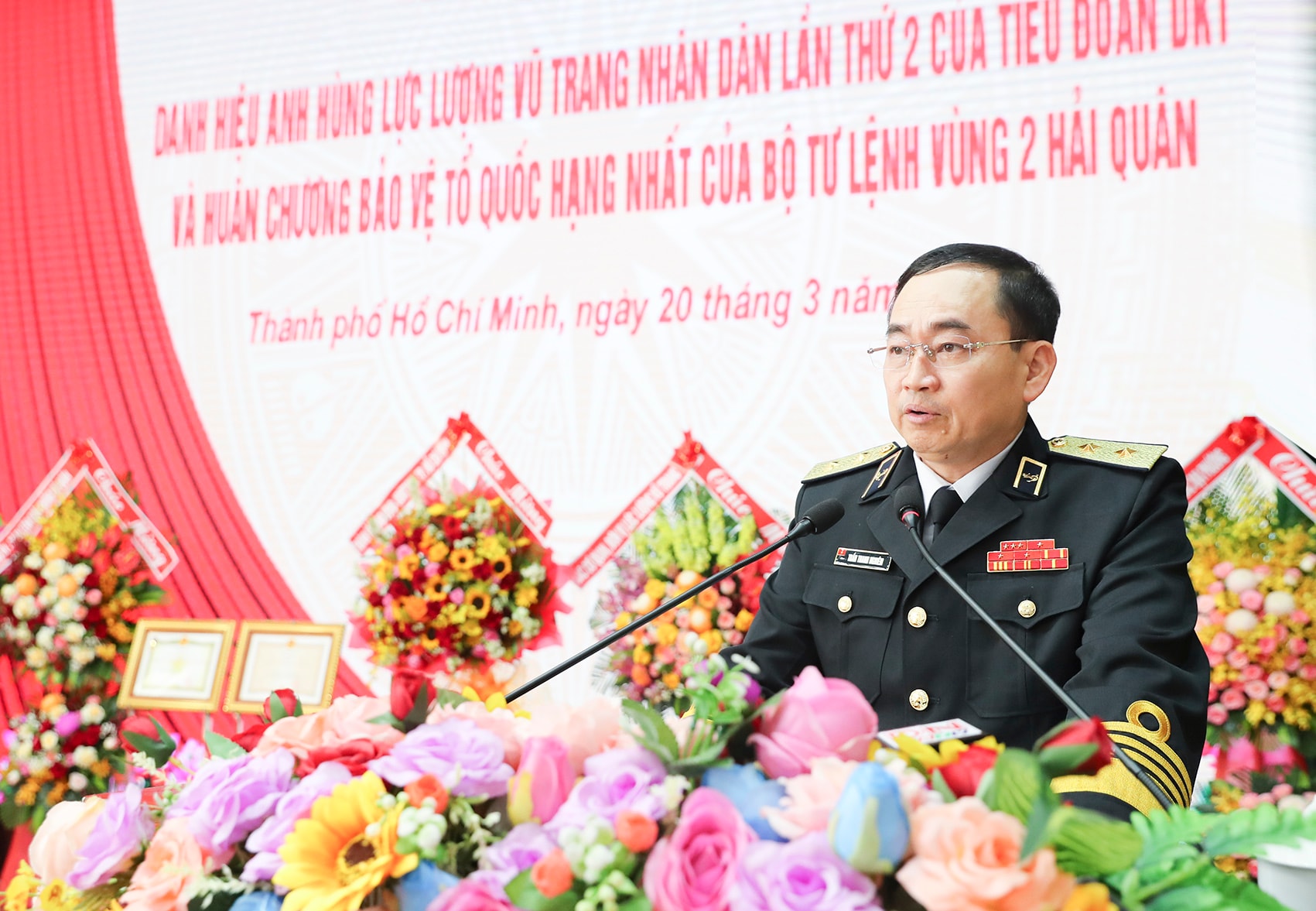 Phát biểu tại buổi lễ, Tư lệnh Quân chủng Hải quân, Phó Đô đốc Trần Thanh Nghiêm yêu cầu cán bộ, chiến sĩ Vùng 2 Hải quân và Tiểu đoàn DK1 tiếp tục phát huy truyền thống, nâng cao chất lượng tổng hợp, sức mạnh chiến đấu; tuyệt đối trung thành với Đảng, Tổ quốc và Nhân dân; nâng cao khả năng tác chiến độc lập dài ngày trên biển, làm chủ vũ khí, trang bị hiện đại.