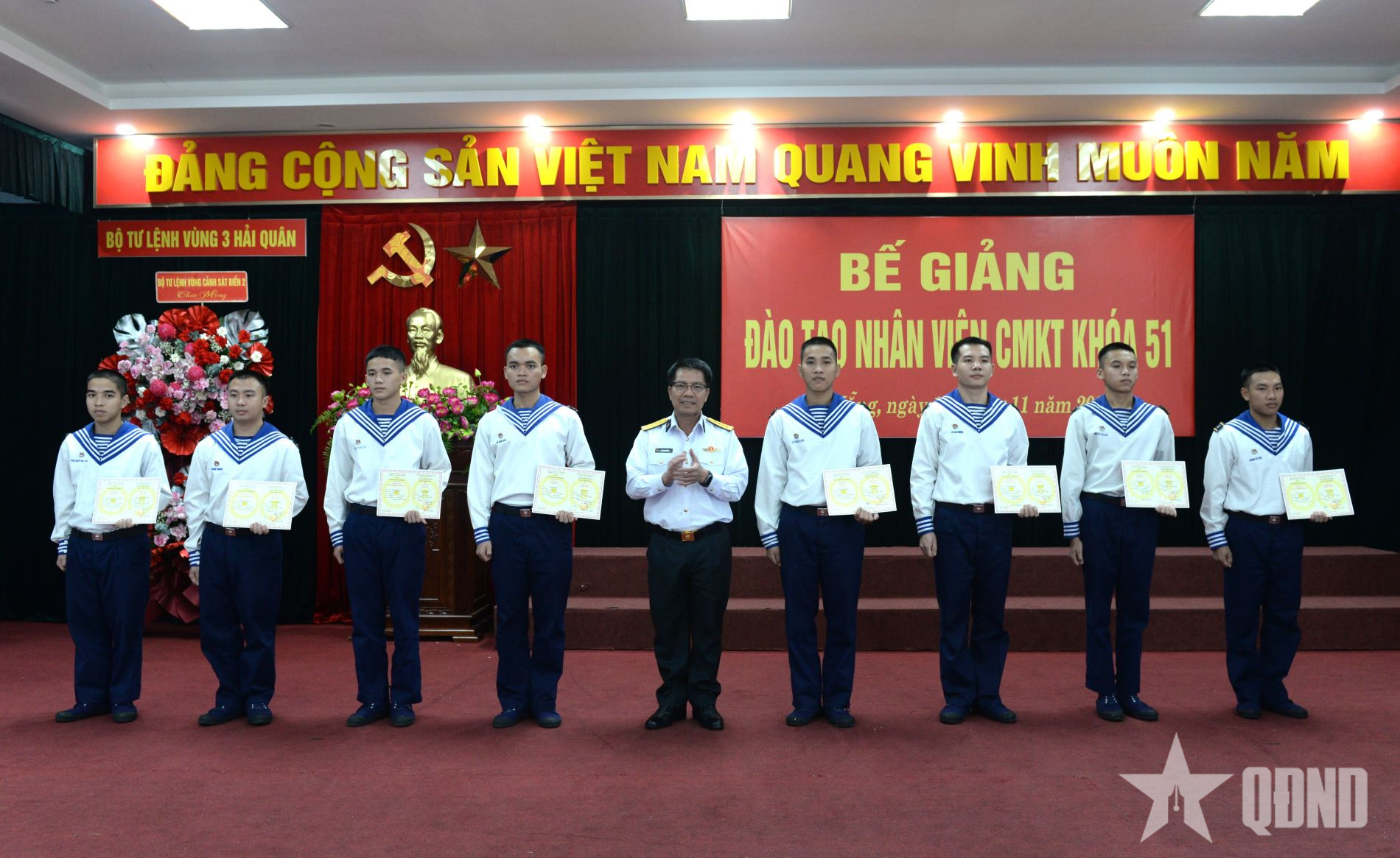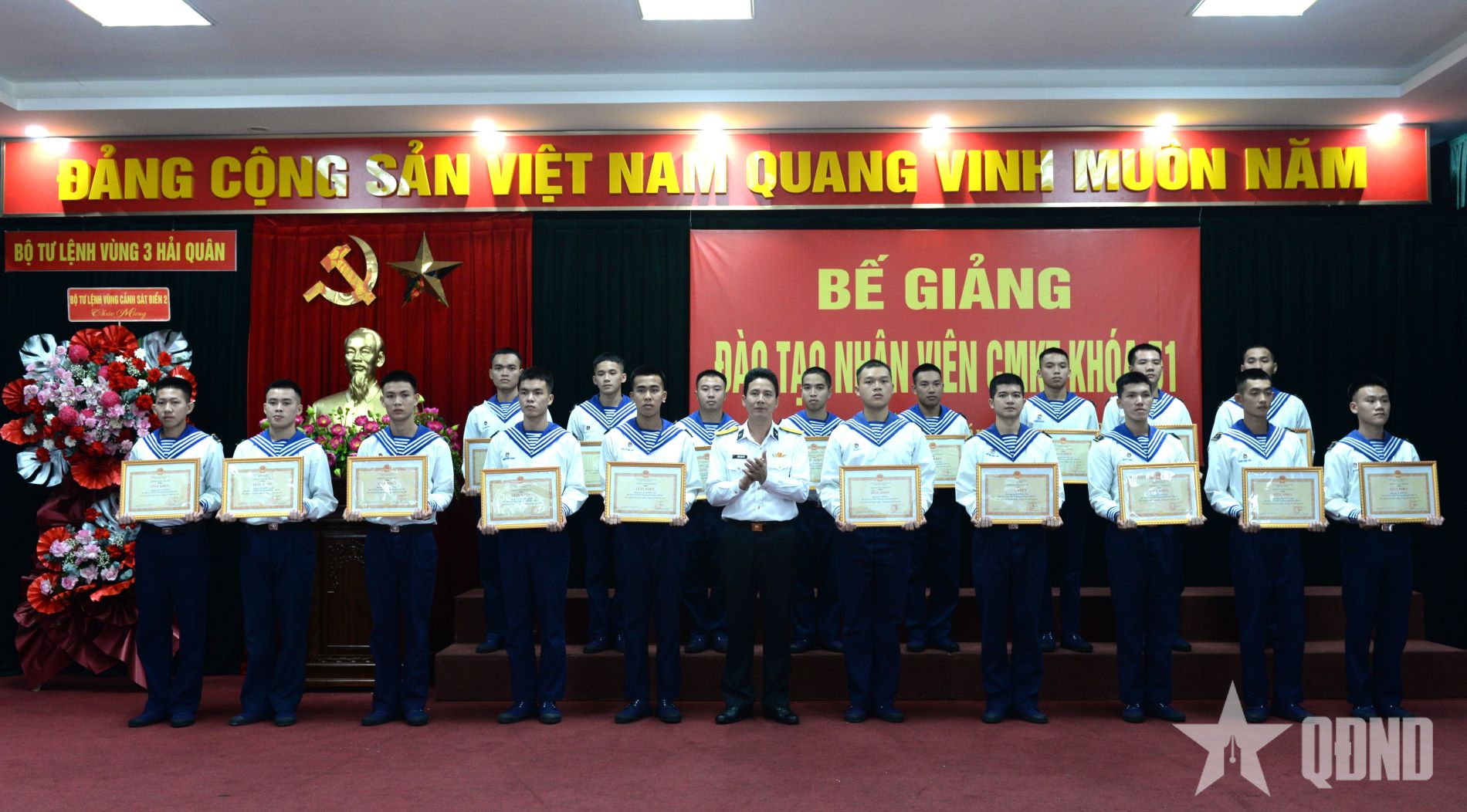 Nhân dịp này, thủ trưởng Bộ tư lệnh Vùng 3 Hải quân trao chứng nhận tốt nghiệp cho các học viên và khen thưởng 18 học viên có thành tích tốt trong khóa đào tạo.