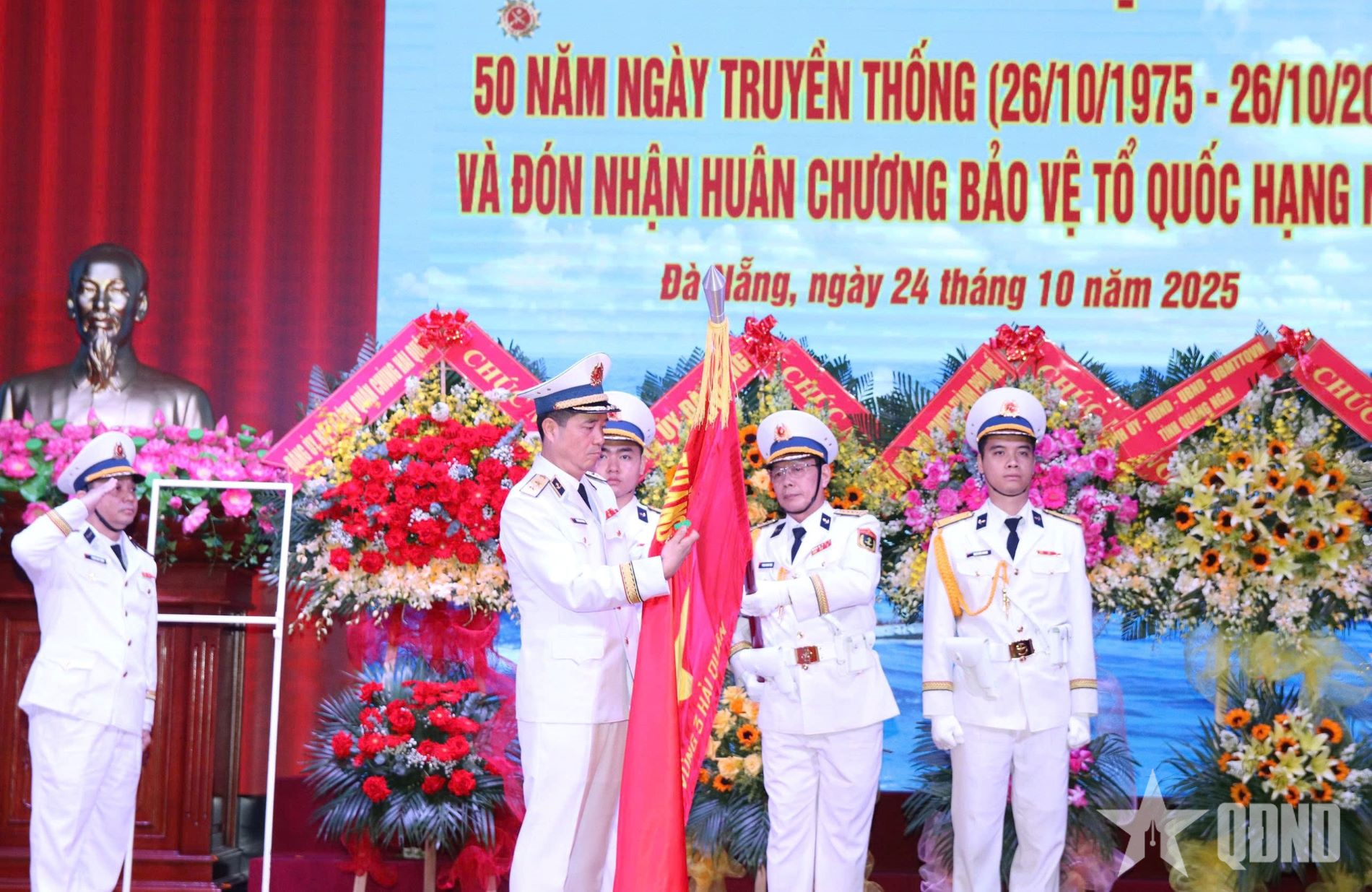 Thừa ủy quyền của Chủ tịch nước, Phó đô đốc Nguyễn An Phong, Bí thư Đảng ủy, Chính ủy Quân chủng Hải quân trao Huân chương Bảo vệ Tổ quốc hạng Nhất tặng Vùng 3 Hải quân.
