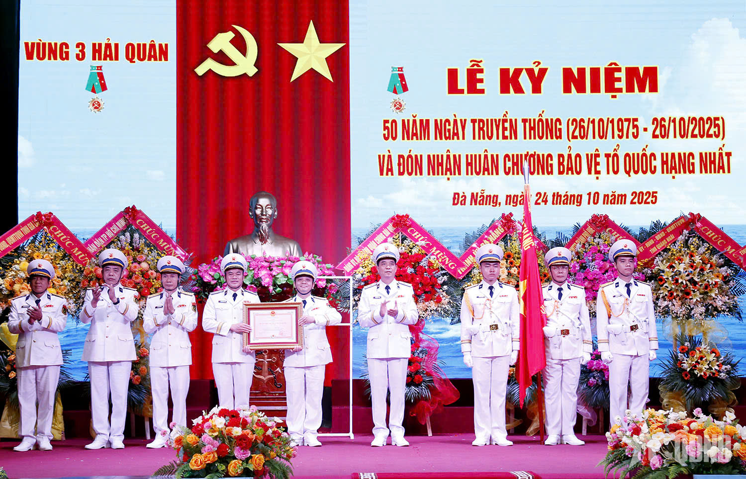 Tại buổi lễ, Thừa ủy quyền của Chủ tịch nước, Phó đô đốc Nguyễn An Phong, Bí thư Đảng ủy, Chính ủy Quân chủng Hải quân trao Huân chương Bảo vệ Tổ quốc hạng Nhất tặng Vùng 3 Hải quân.