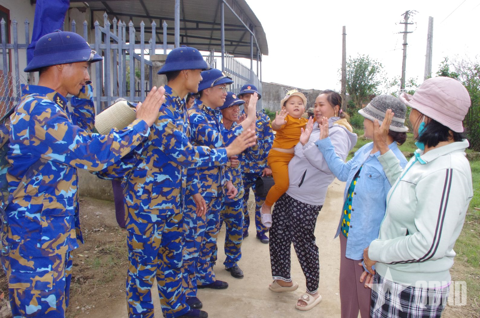 Cán bộ, chiến sĩ Vùng 3 Hải quân chia tay gia đình bà Nguyễn Thị Thu Hồng.