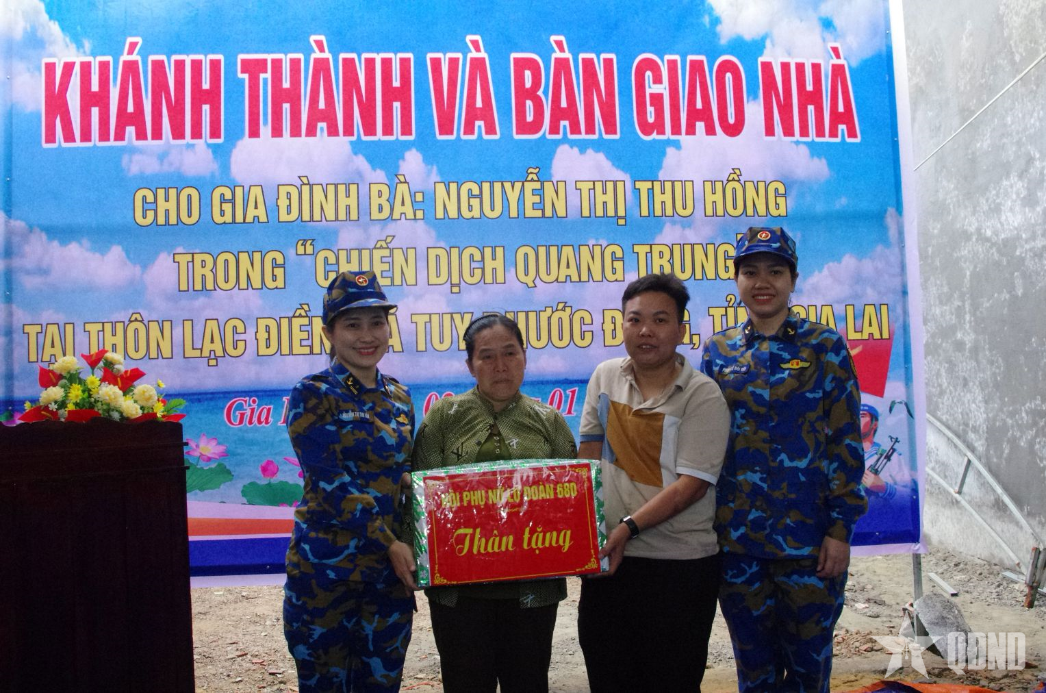 Hội Phụ nữ Đoàn 680, Vùng 3 Hải quân trao quà tặng các hộ dân trong ngày chuyển về nhà mới.