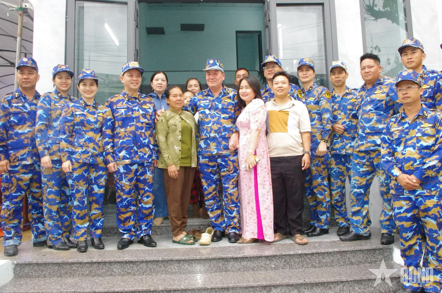 Lãnh đạo, chỉ huy Vùng 3 Hải quân và chính quyền địa phương chúc mừng gia đình bà Đỗ Thị Ba có căn nhà mới khang trang.