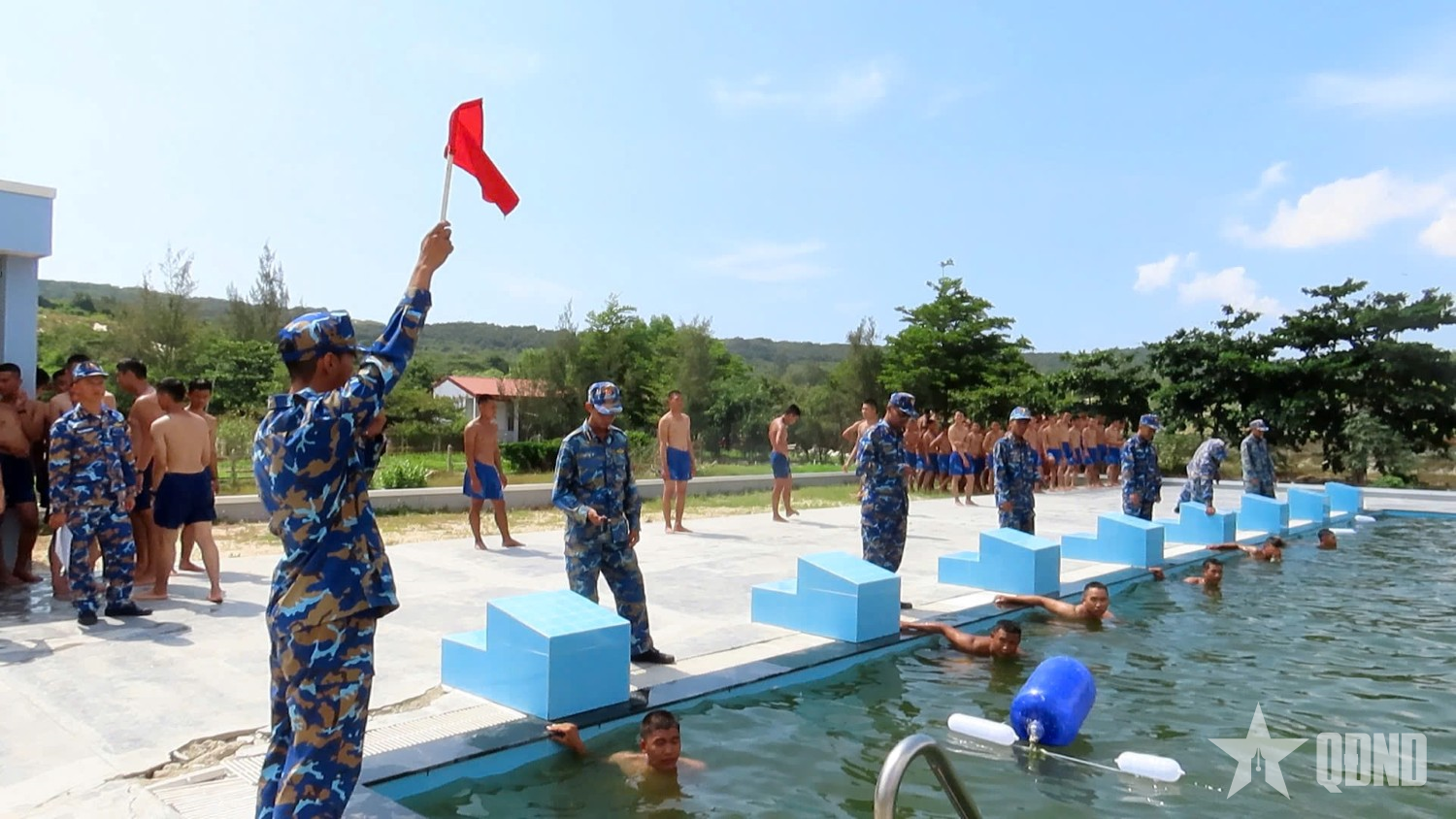 Chiến sĩ mới các đơn vị Vùng 4 Hải quân thực hành kiểm tra bơi.
