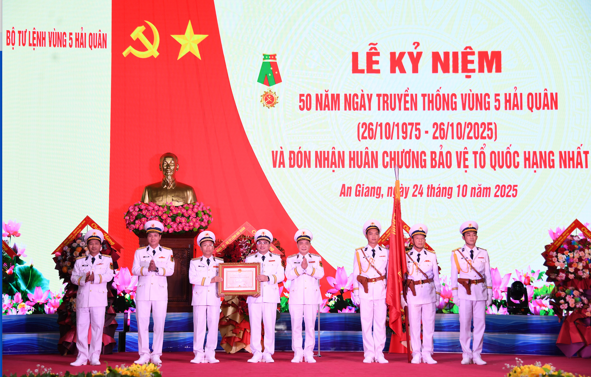 Thừa ủy quyền của Chủ tịch nước, Chuẩn Đô đốc Nguyễn Bá Quân đã trao Huân chương Bảo vệ Tổ quốc hạng Nhất tặng Vùng 5 Hải quân. Đây là lần thứ hai Vùng 5 được nhận phần thưởng cao quý này, thể hiện sự ghi nhận của Đảng, Nhà nước và Quân đội đối với những đóng góp to lớn của cán bộ, chiến sĩ đơn vị trong sự nghiệp xây dựng và bảo vệ Tổ quốc.