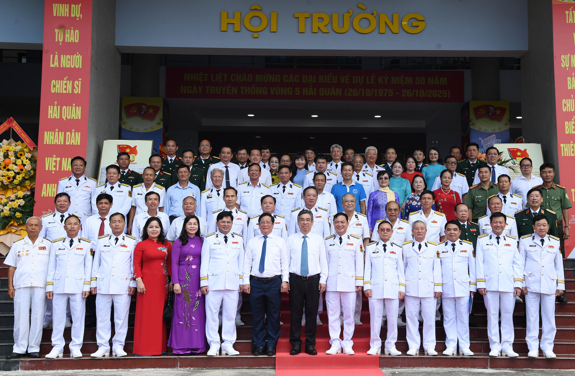 Phát biểu tại buổi lễ, Chuẩn Đô đốc Nguyễn Bá Quân chúc mừng và đánh giá cao những thành tích xuất sắc mà các thế hệ cán bộ, chiến sĩ Vùng 5 Hải quân đã đạt được trong suốt 50 năm qua. Chuẩn Đô đốc khẳng định, trải qua nửa thế kỷ rèn luyện, thử thách, Vùng 5 luôn hoàn thành tốt mọi nhiệm vụ được giao, đóng góp quan trọng vào sự nghiệp bảo vệ vững chắc chủ quyền biển, đảo của Tổ quốc.