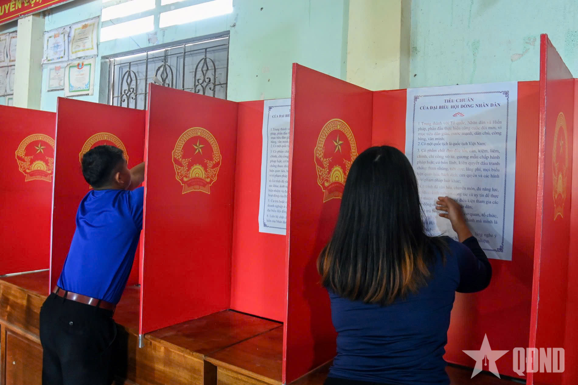 Công tác chuẩn bị cuối cùng tại khu vực bỏ phiếu số 7, thôn Ca Cú 2 đã hoàn tất, sẵn sàng cho ngày hội lớn.