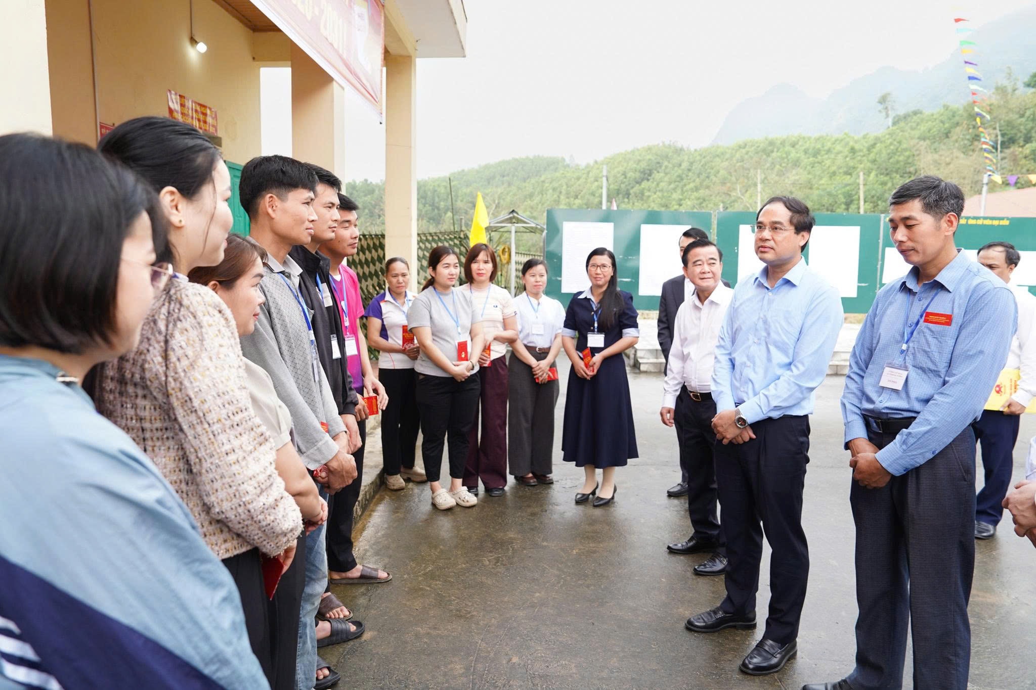 Bí thư Tỉnh ủy Trịnh Xuân Trường kiểm tra công tác chuẩn bị bầu cử tại Khu vực bỏ phiếu số 14, xóm Na Rang, xã Nghinh Tường