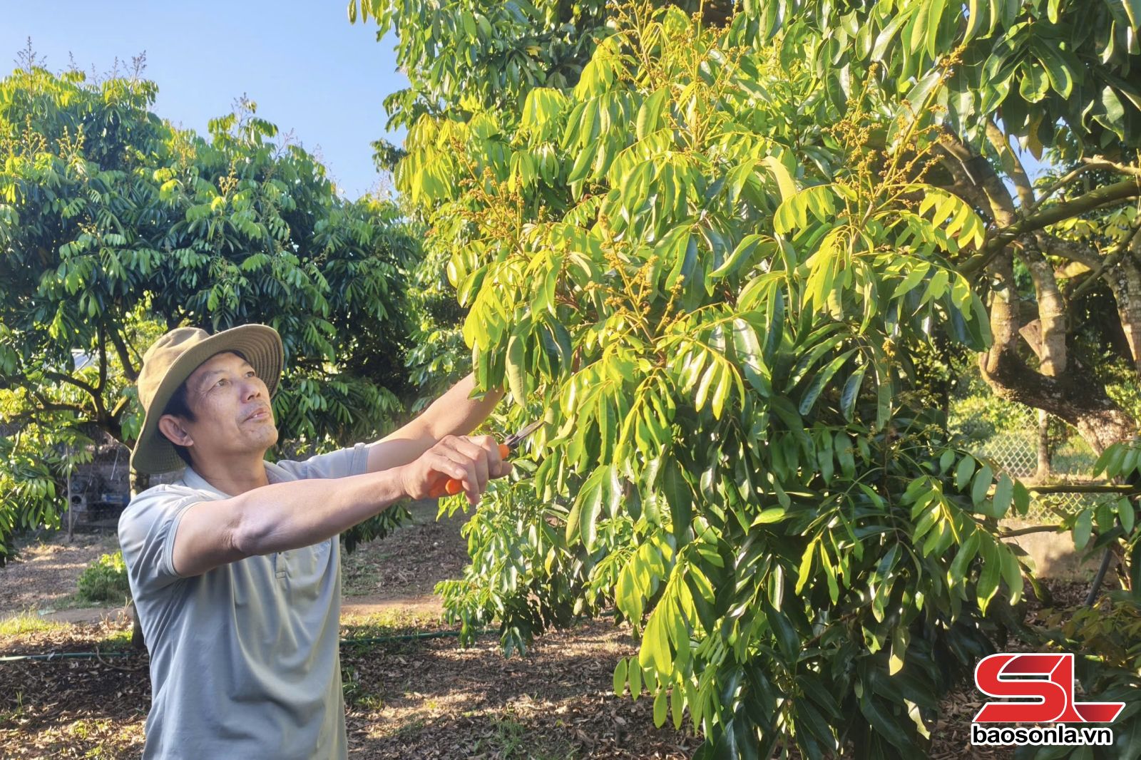 Vườn nhãn chín sớm của ông Đào Mạnh Hồng, Bí thư chi bộ, Trưởng bản Hồng Nam, xã Chiềng Khoong hiện đã ra hoa.