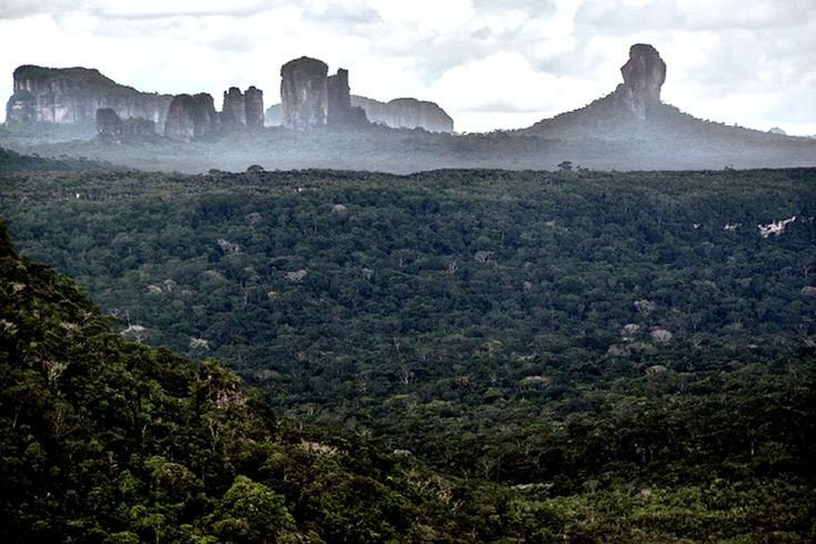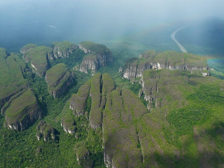 Có các khối núi đỉnh bằng hùng vĩ. Những khối núi có đỉnh bằng phẳng, dân địa phương gọi là tepuy, sừng sững giữa rừng xanh, tạo nên phong cảnh siêu thực như trên hành tinh khác. Ảnh: Pinterest.