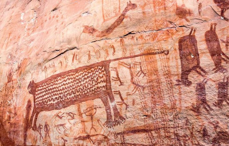 Vườn quốc gia chứa hàng chục nghìn bức tranh cổ. Các bức họa được vẽ trên vách núi từ hơn 20.000 năm trước, mô tả con người, động vật và nghi lễ tôn giáo. Ảnh: Pinterest.