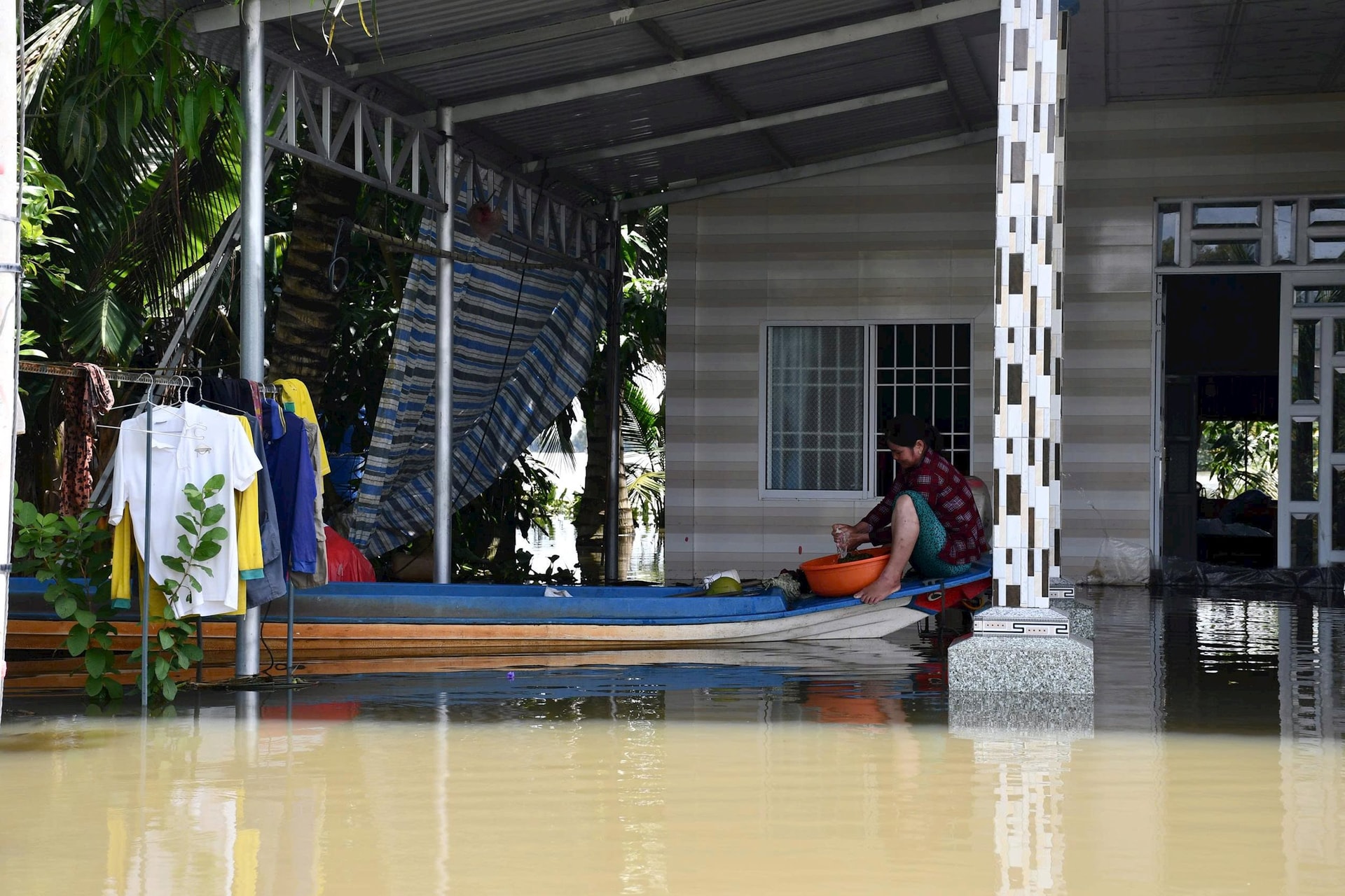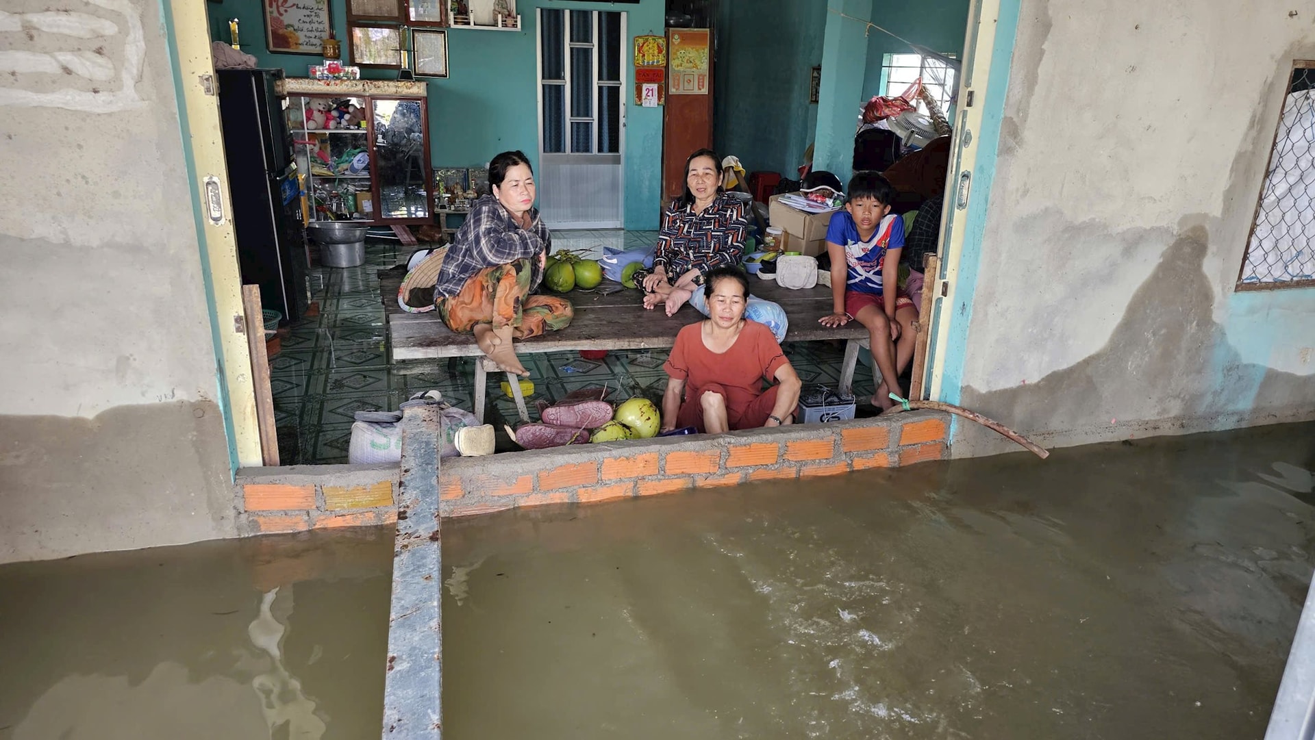 Nước ngập vào nhà khiến cuộc sống người dân đảo lộn.
