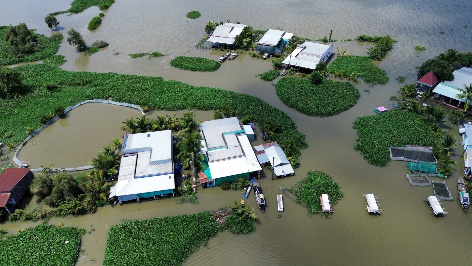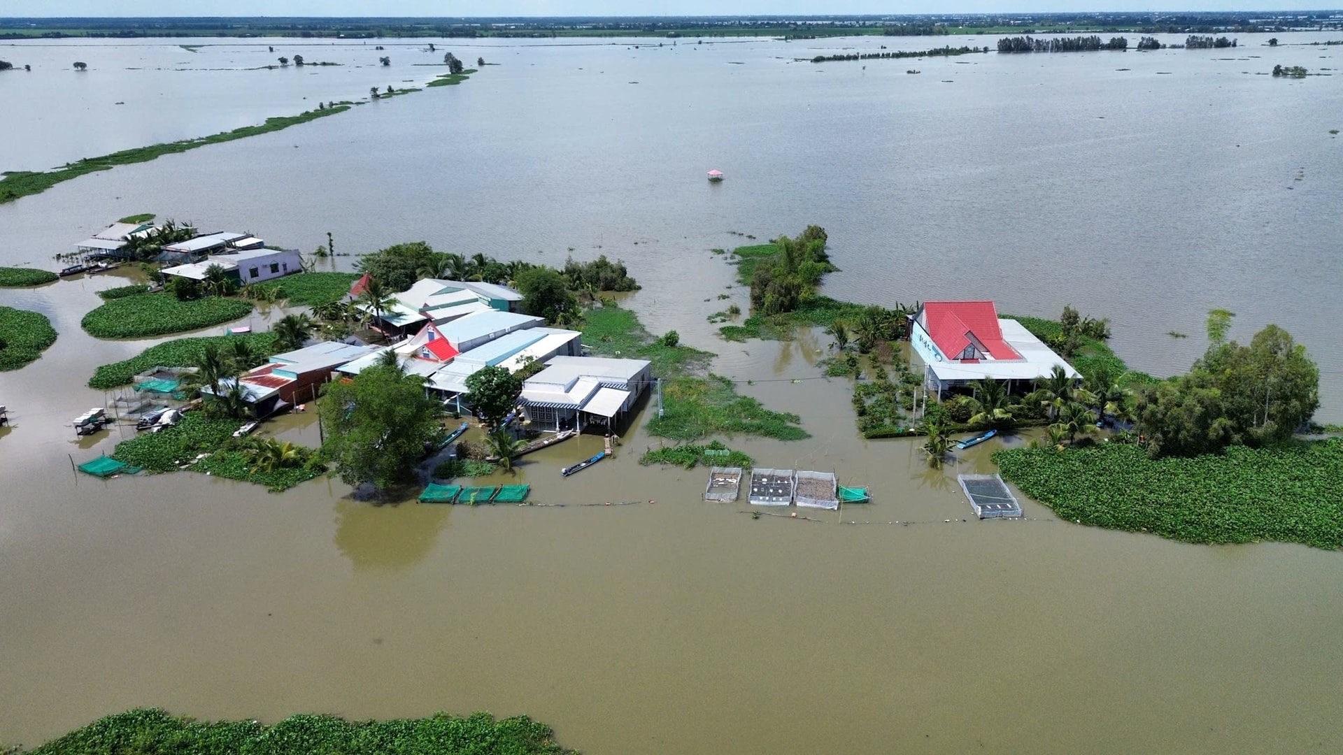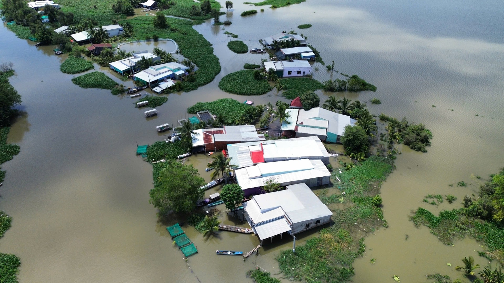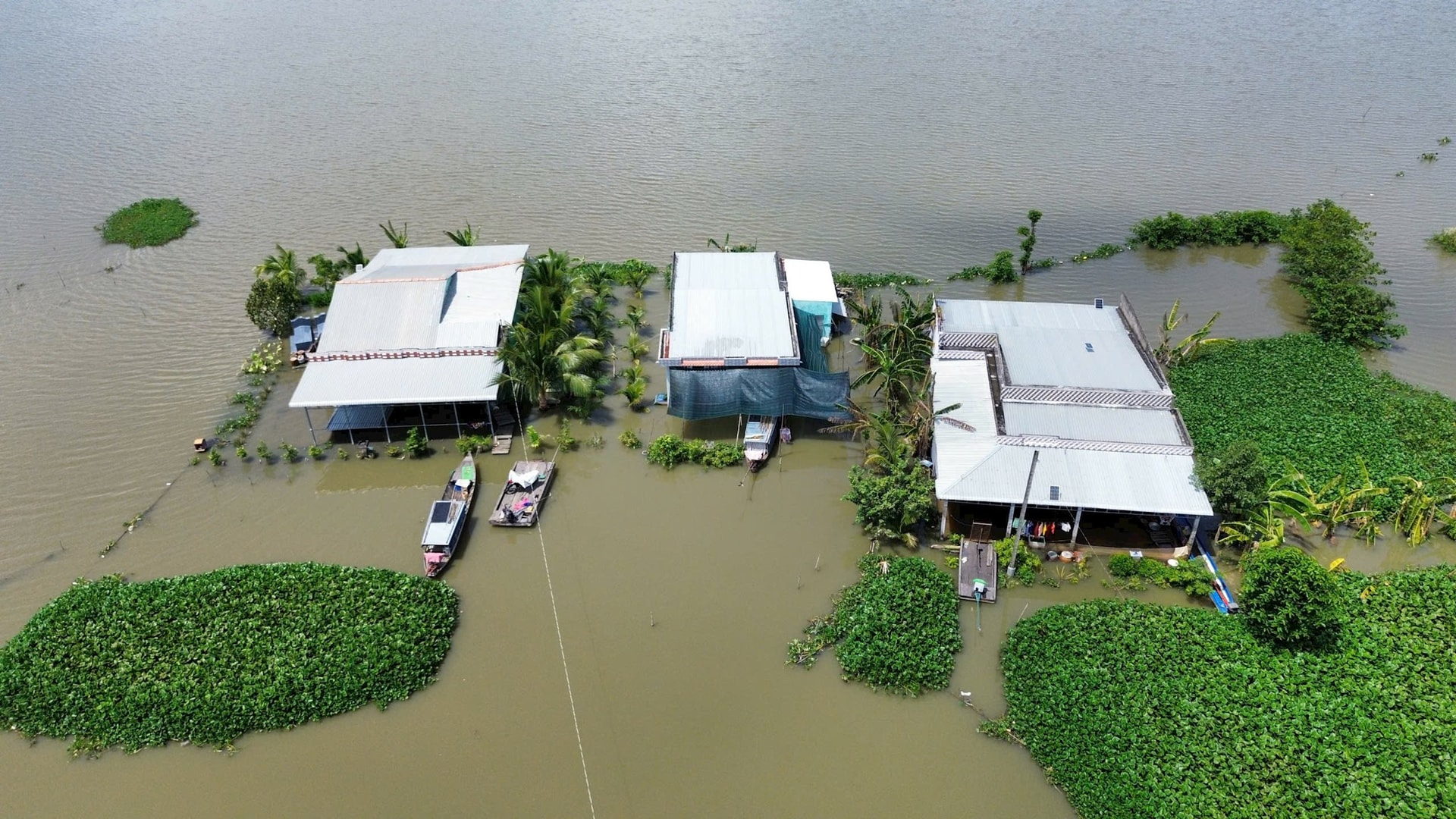Ghi nhận tại các xã Vĩnh Châu, Khánh Hưng (tỉnh Tây Ninh), trong những ngày qua, nhiều ngôi nhà, ruộng lúa, vườn cây trái của người dân bị ngập sâu trong nước.