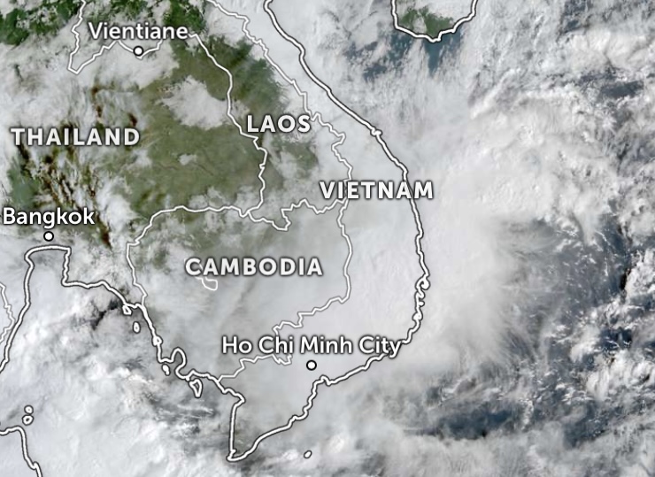 Ảnh mây vệ tinh tại khu vực Trung bộ và Nam bộ của nước ta vào lúc 8 giờ sáng nay 25-10. Nguồn: Z.E