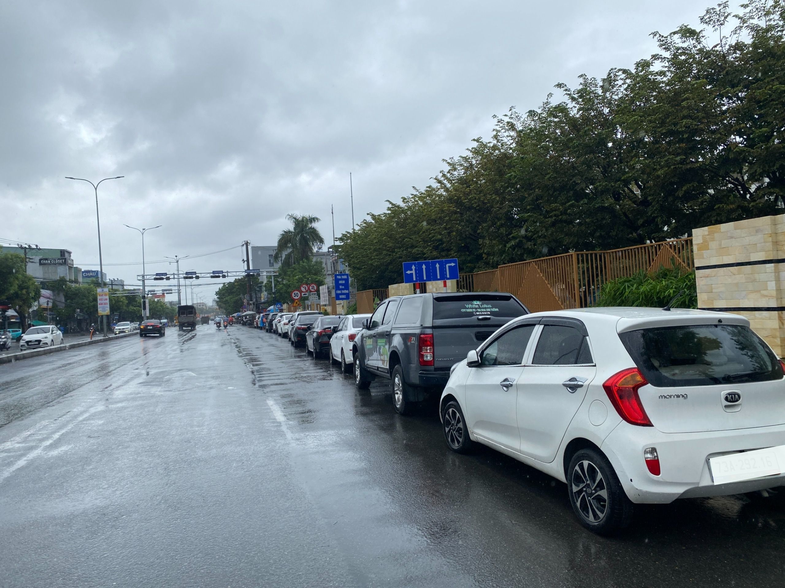 Tại đường Tôn Đức Thắng (phường Hòa Khánh), hàng trăm ô tô đã được người dân đưa đến đỗ thành hàng dài hai bên đường, vỉa hè để tránh nước.