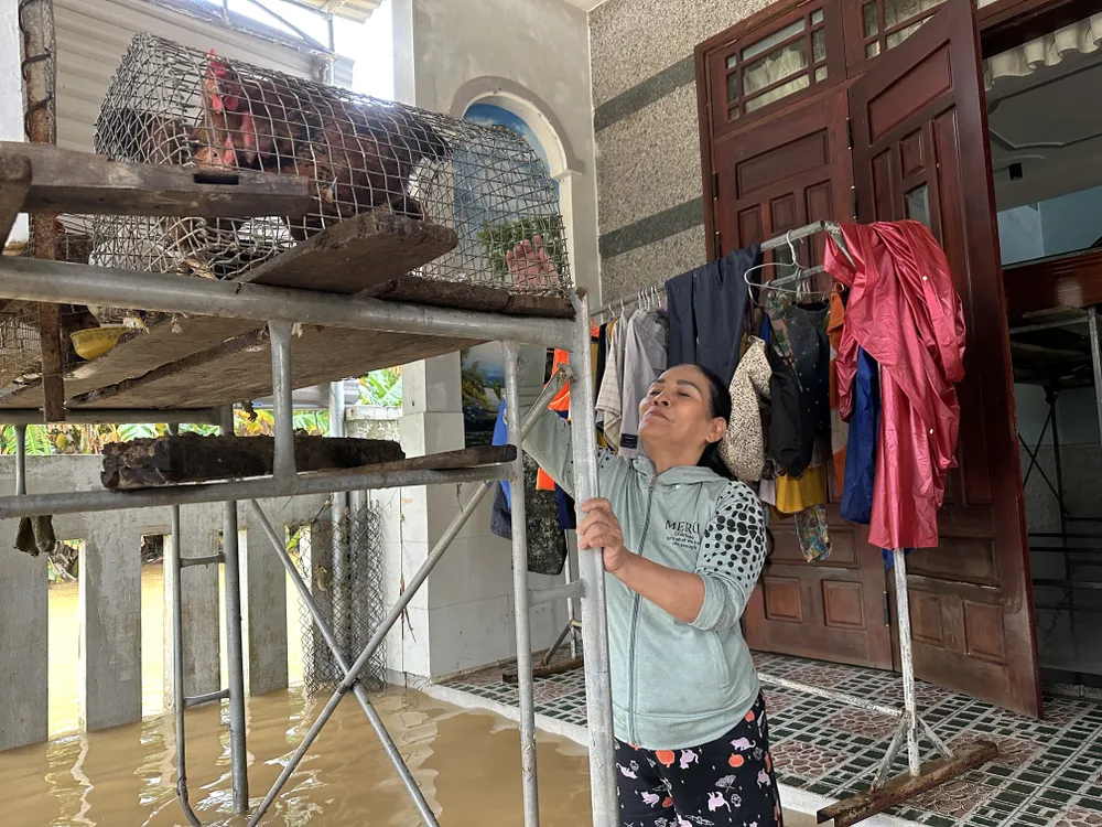 “Nhưng chiều qua, nghe tin đài báo dữ quá, vượt đỉnh lũ năm 1964. Tôi không dám ở, di dời đi nơi khác. Lúc đó chỉ lo cho con người, đồ đạc đã dọn lên gác mặc kệ, không quan tâm đến nữa”, ông Hùng kể.