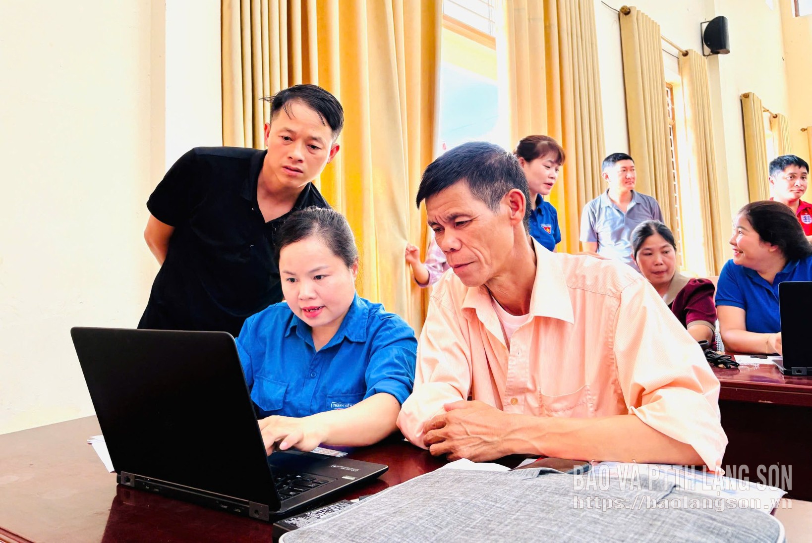Các bí thư chi bộ thôn trên địa bàn xã Lợi Bác được đoàn viên thanh niên hướng dẫn khai thác, sử dụng các ứng dụng số để nâng cao hiệu quả công tác thông tin, tuyên truyền