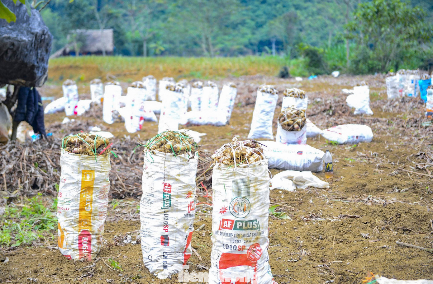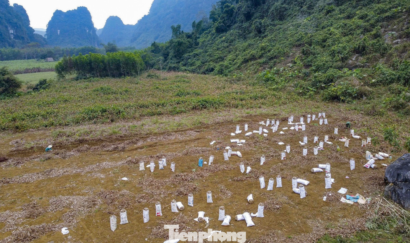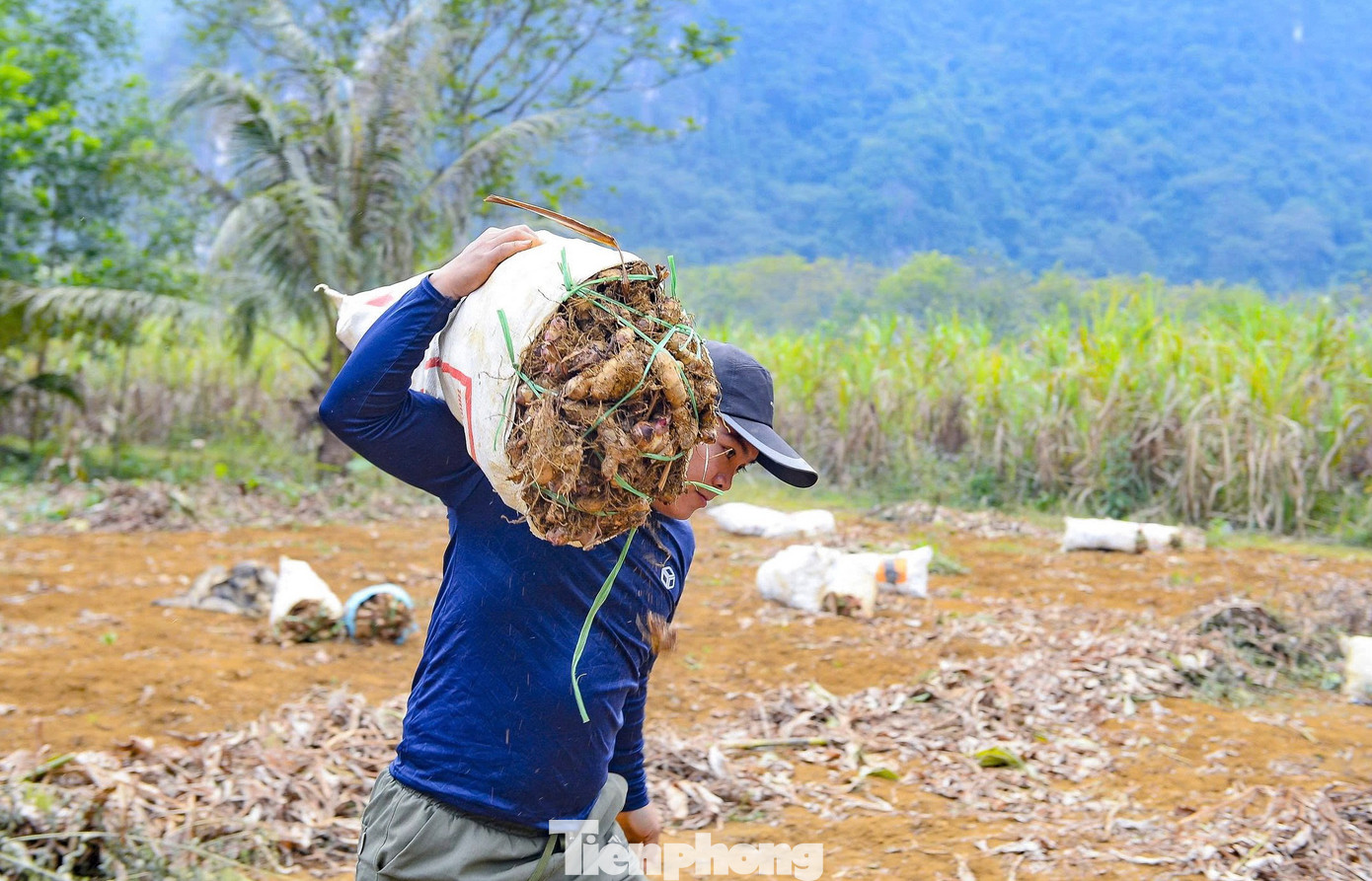 Những ngày này, không khí thu hoạch dong riềng đang diễn ra khẩn trương. Trên các cánh đồng, từng tốp lao động tất bật đào củ, phân loại, bốc xếp để kịp cung ứng cho thị trường và các cơ sở chế biến miến dong dịp Tết.