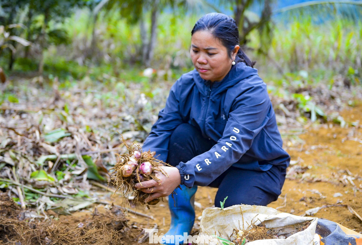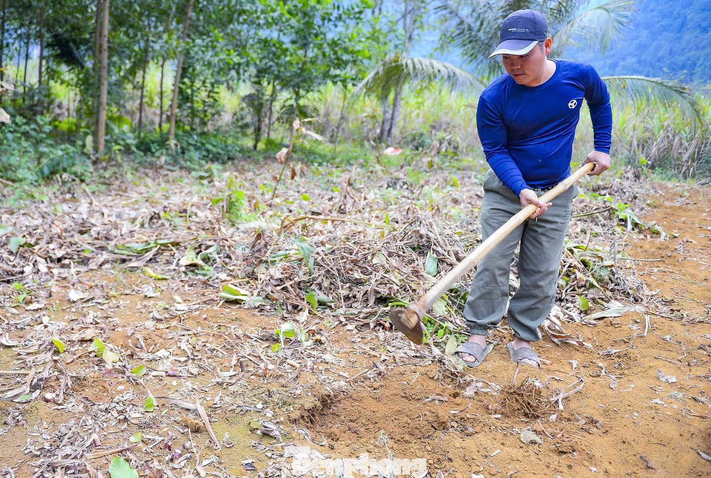 “Dong riềng là cây trồng phù hợp với điều kiện địa phương, ít sâu bệnh, không đòi hỏi nhiều công chăm sóc, giống được giữ lại từ vụ trước. Vụ mùa cao điểm, gia đình phải thuê 10-15 lao động, với mức tiền công 250.000-300.000 đồng/người mới kịp thu hoạch”, bà Huyên nói.