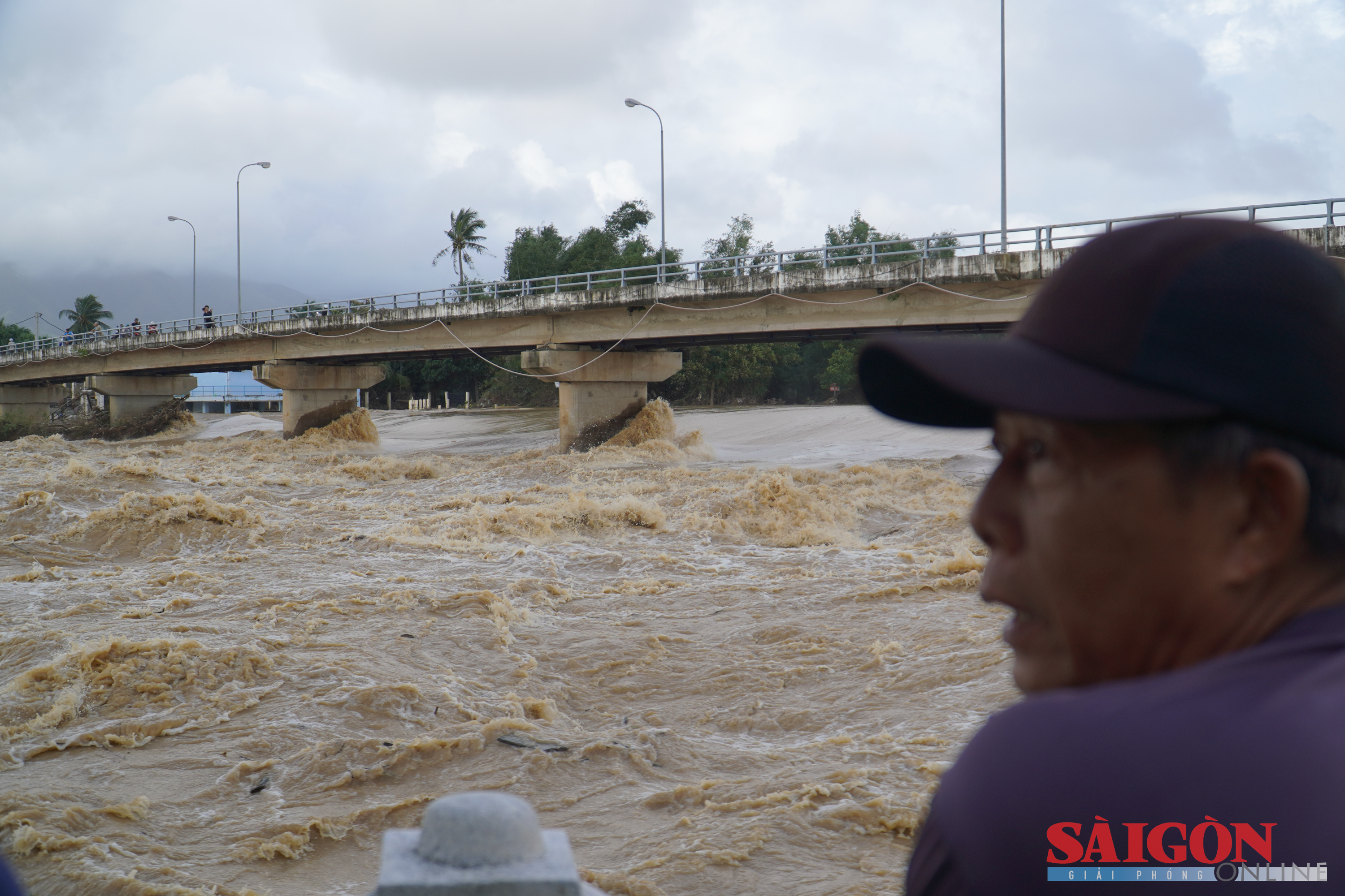 Nước trên sông Cái Nha Trang (đoạn qua cầu Vĩnh Phương) đang lên nhanh. Ảnh: HIẾU GIANG