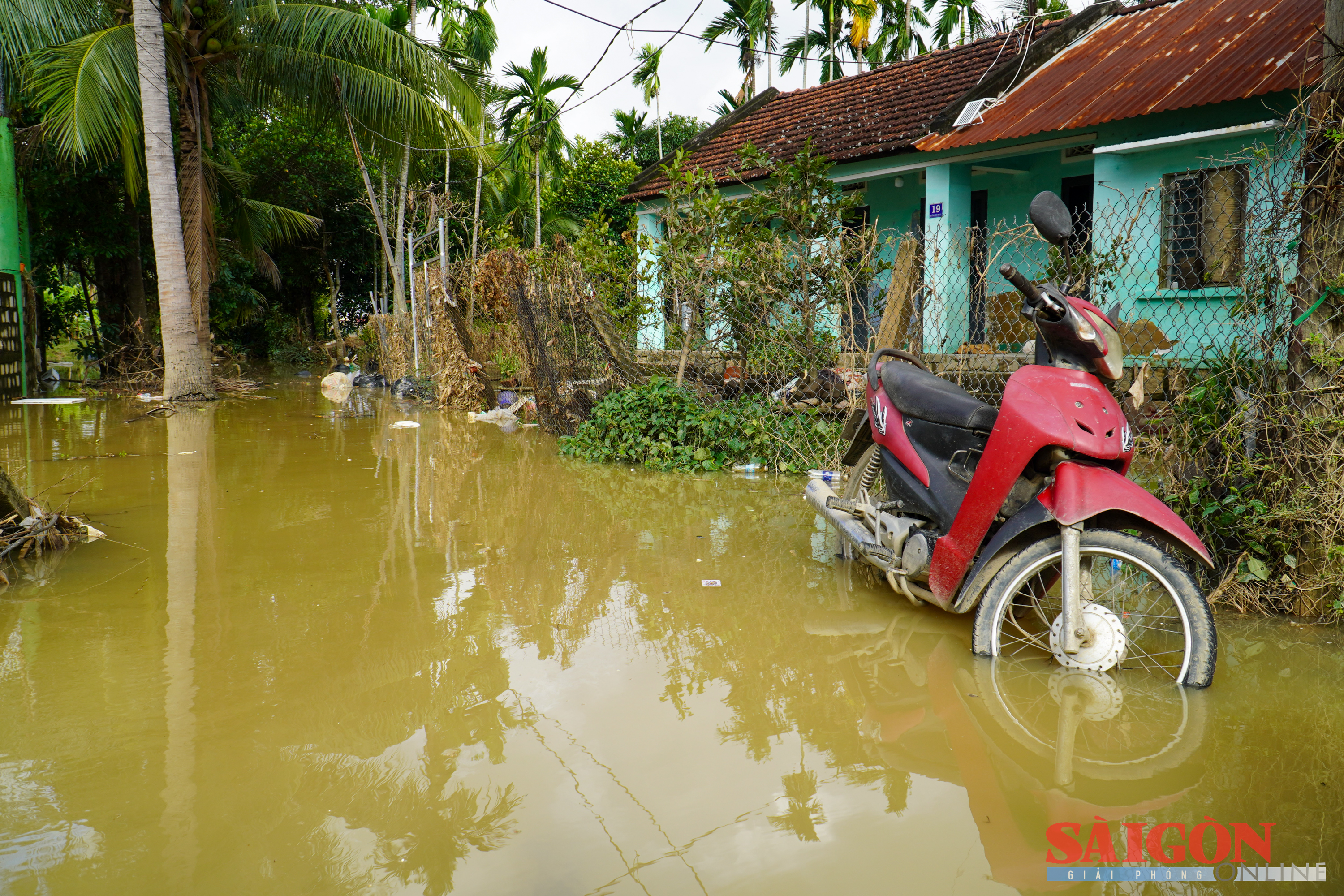 Tại đường Nguyễn Lương Bằng (khu vực Vĩnh Phương, phường Bắc Nha Trang), nước ngập khoảng 30cm do khu vực này nằm ở vùng trũng ven sông Cái. Người dân phải dắt bộ xe máy để bảo đảm an toàn.
