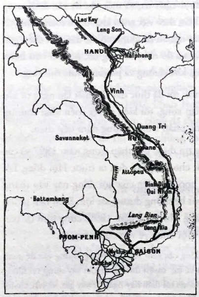 Hình 2: Kế hoạch phát triển đường sắt ở Đông Dương. Nguồn: Paul Doumer (1905). Xứ Đông Dương (Hồi Ký). Bản dịch của Lưu Đình Tuân, Hiệu Constant, Lê Đình Chi, Hoàng Loang, Vũ Thúy (2015). Nhà xuất bản thế giới, Hà Nội.
