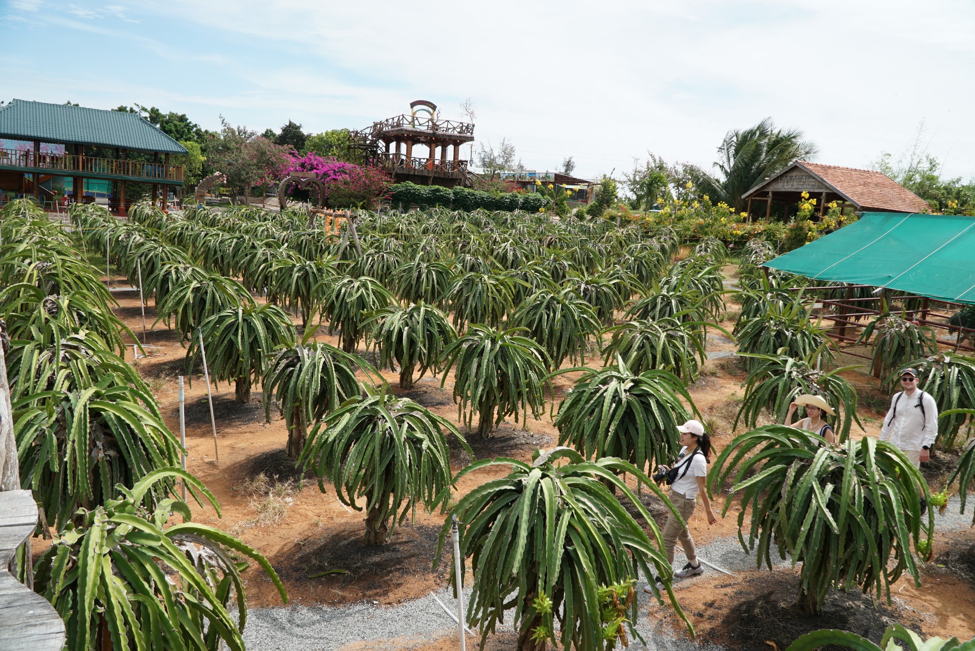 Nắng tràn xuống những giàn nho đang vào độ chín ở thôn Hồng Lâm, xã Hòa Thắng. Dưới tán lá xanh, từng tốp du khách thong thả chụp hình, cúi xuống cắt những chùm nho còn phấn trắng trên vỏ, thưởng thức ngay tại vườn. Cạnh đó, vườn thanh long mùa hoa trở thành điểm check-in. Cảnh vườn cây trái tạo nên một không gian rất khác so với những điểm du lịch quen thuộc. Ít ai nghĩ rằng, từ mảnh đất sản xuất nông nghiệp cha truyền con nối, nơi đây đang góp một mảnh ghép sinh động cho bức tranh du lịch nông nghiệp đang hình thành ở Lâm Đồng.