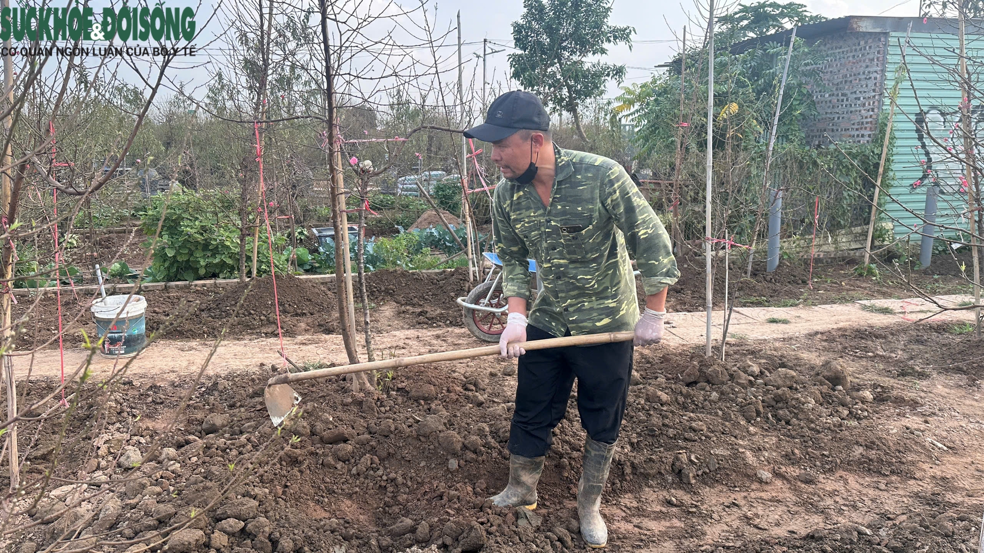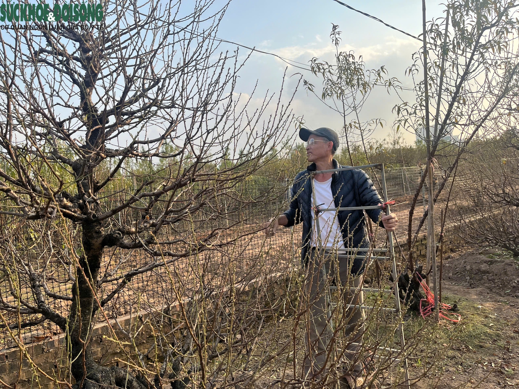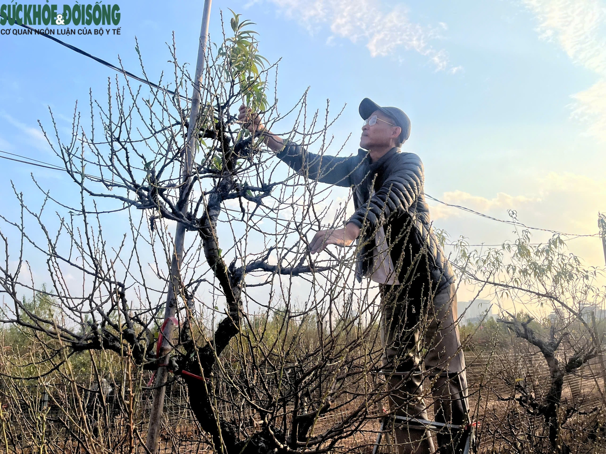 Theo anh Hải, chủ một vườn đào tại Nhật Tân, năm nay gia đình anh chăm sóc hơn một trăm gốc đào, chủ yếu là đào bích và đào dáng truyền thống. Thời điểm này, anh đang tập trung vun đất, chỉnh gốc, buộc cành và theo dõi sát diễn biến thời tiết để điều chỉnh kỹ thuật chăm sóc phù hợp.