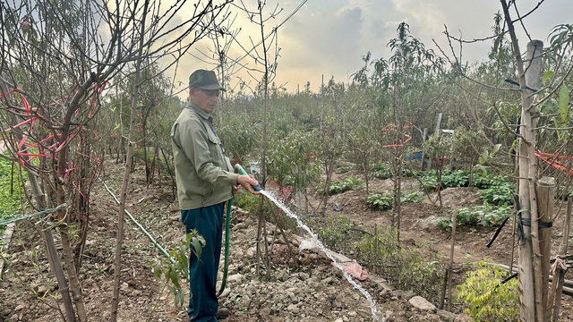 Ông Hùng, chủ vườn đào tại Nhật Tân, chia sẻ nghề trồng đào không chỉ là nguồn thu nhập chính của gia đình mà còn là nghề truyền thống gắn bó qua nhiều thế hệ. Những ngày giáp Tết, ông cùng vợ ra vườn, phân công công việc, tất bật chuẩn bị cho vụ đào lớn nhất trong năm.