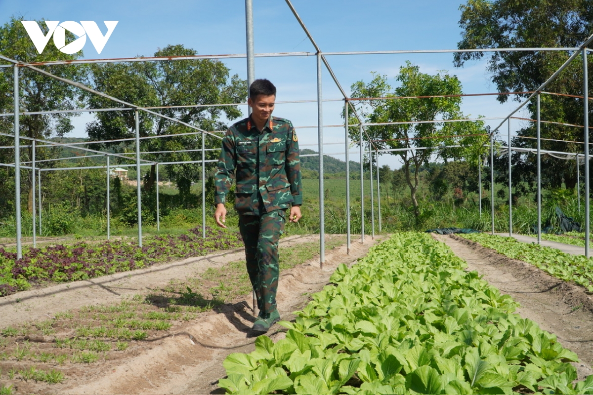 "Ngoài giờ huấn luyện, học tập đơn vị đã tổ chức cho chiến sĩ tăng gia sản xuất, trồng những loại rau xanh và hoa quả. Việc tăng gia sản xuất cũng nhằm nâng cao đời sống vật chất, tinh thần cho cán bộ, chiến sĩ trong đơn vị, góp phần xây dựng môi trường quân đội ngày càng vững mạnh, xanh – sạch – đẹp, chính quy và hiện đại", Trung sĩ Hoàng cho biết.
