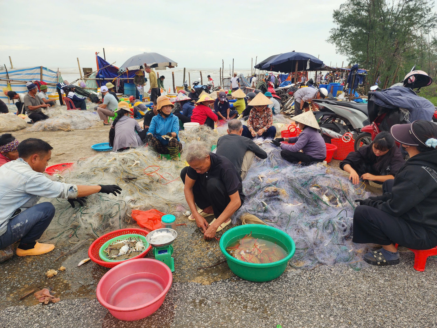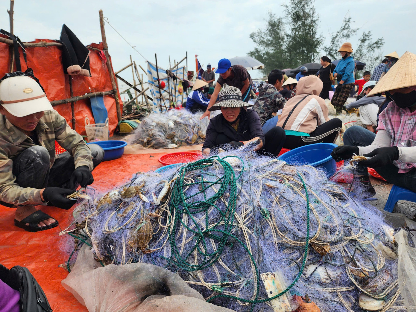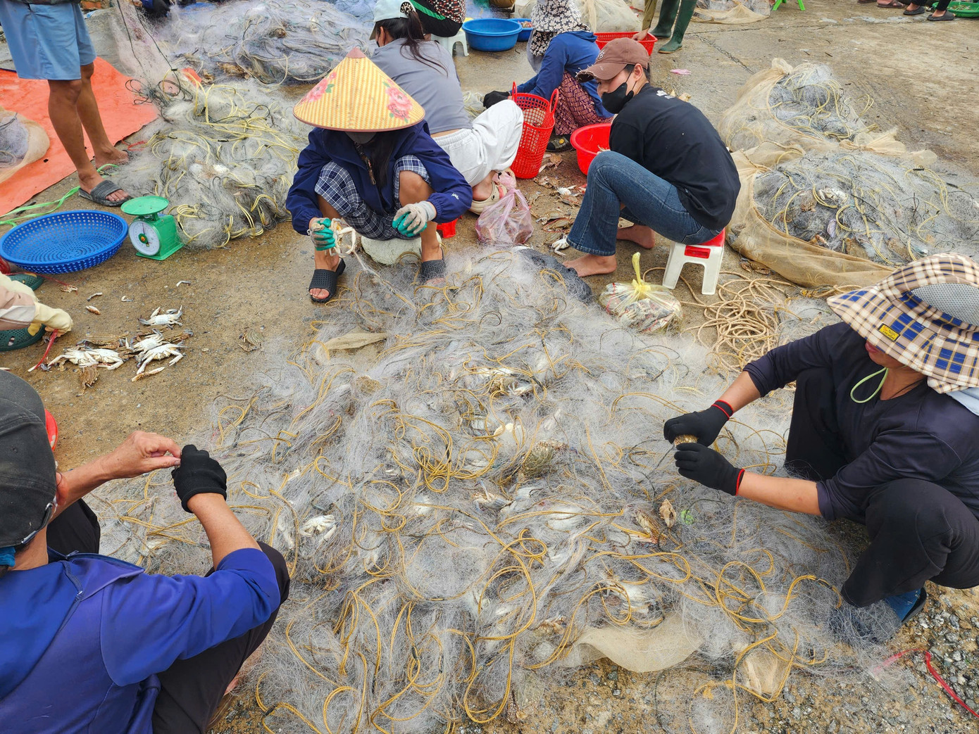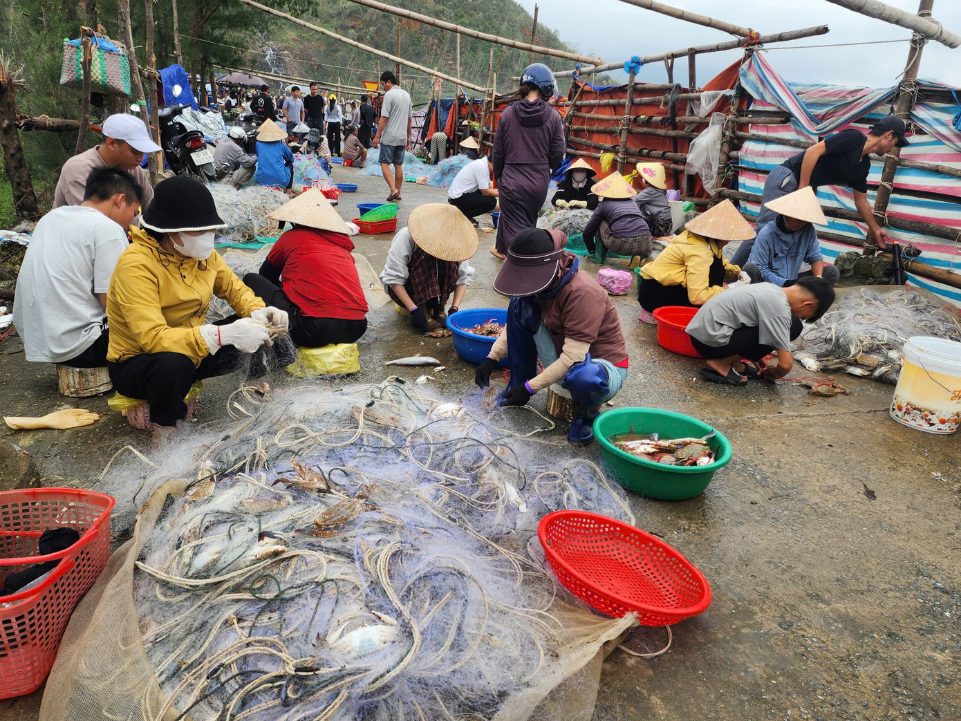 Theo một số ngư dân, do ảnh hưởng của mưa lũ, biển động mạnh nên thời gian qua tạm ngừng ra khơi. Đến nay khi gió nhẹ, biển lặng, trời hửng nắng mới bắt đầu thả lưới đánh bắt gần bờ. Họ ra khơi từ khoảng 2h -3h sáng, đến khoảng 6h ngư dân chở mẻ lưới đầu tiên vào bờ.