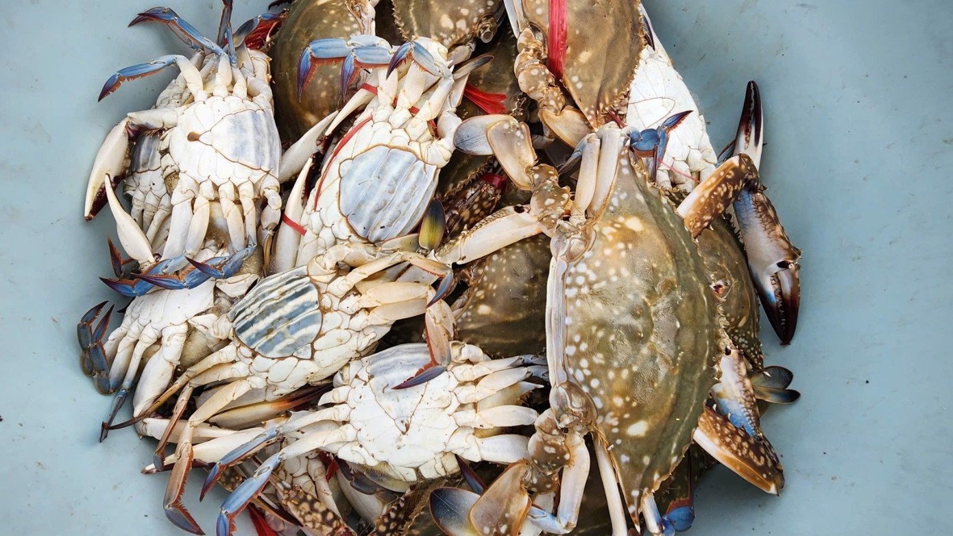 Ghẹ tươi xanh sau khi được đánh bắt từ biển, ngư dân đưa lên bờ bán cho tiểu thương.