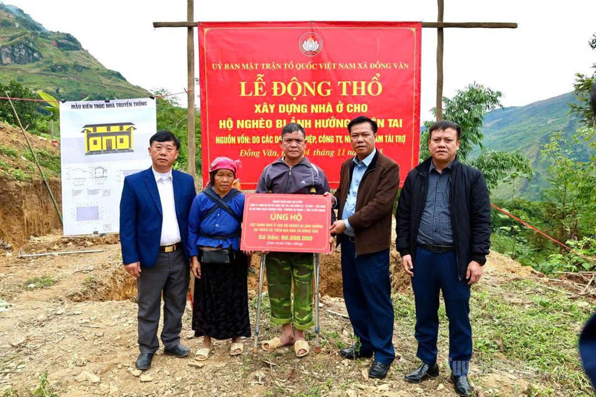 Ủy ban MTTQ xã Đồng Văn tổ chức Lễ động thổ làm nhà ở cho hộ nghèo bị ảnh hưởng bởi thiên tai.
