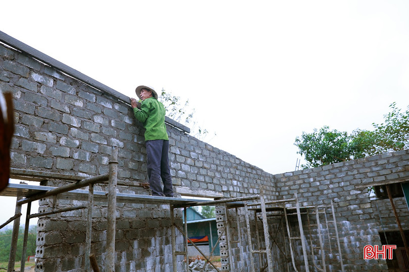 Nhờ số tiền chăn nuôi, tích lũy được vợ chồng anh Khương đang xây mới mở rộng gian nhà cũ trước đó.